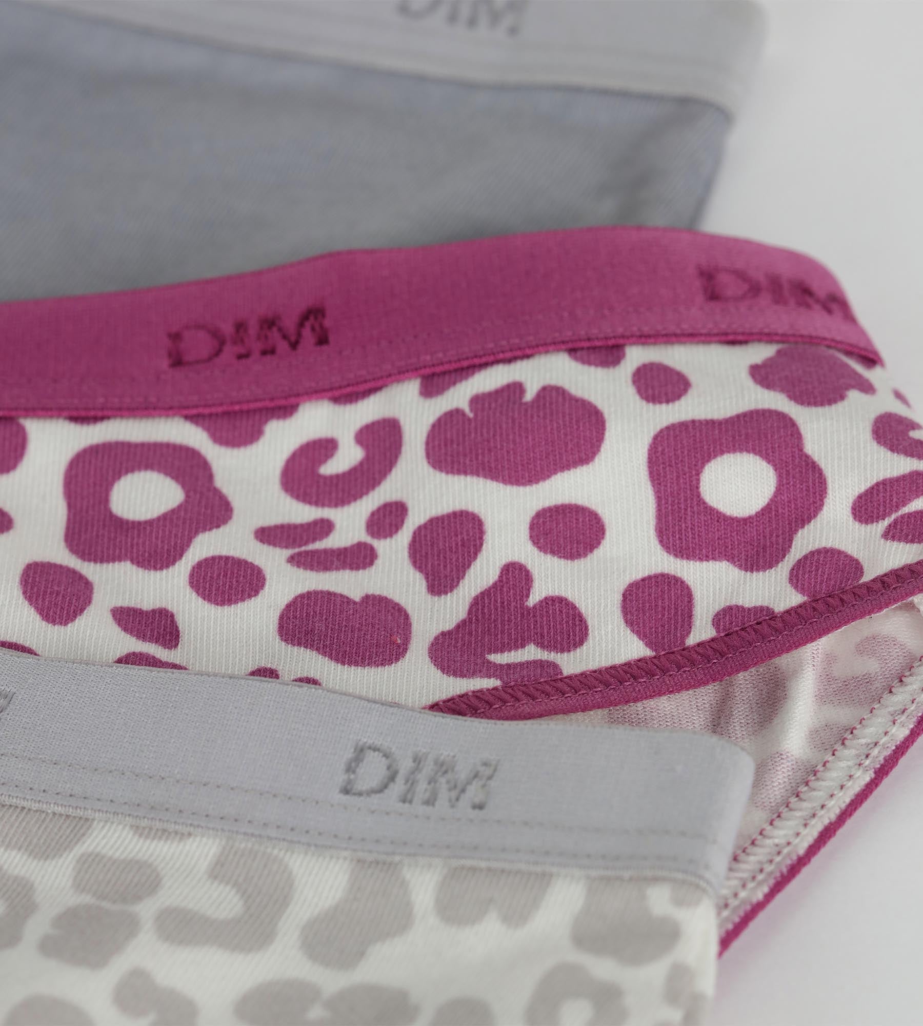 Pack of 3 grey and purple Léo stretch cotton girls' knickers Les Pockets