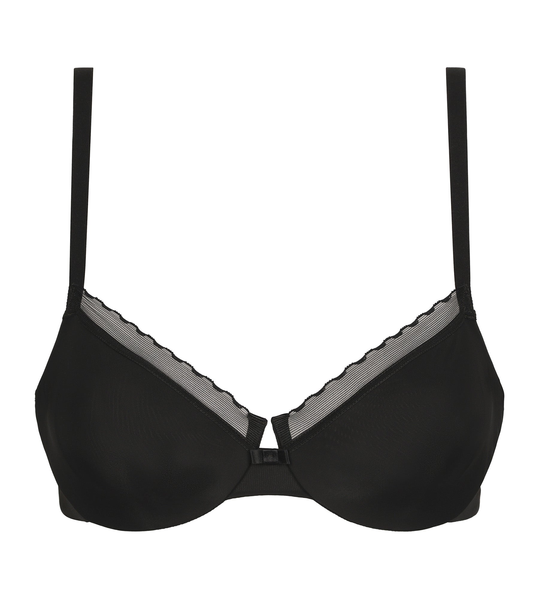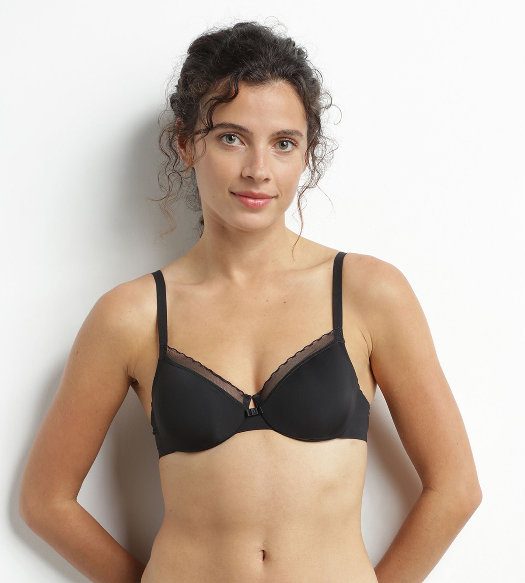 Designed with thin-shell cups and a wispy tulle trim, the Dim Daily Confort concealed underwired bra shapes the bust and highlights the décolleté with subtlety. Thermo-glued seams and straps, plus a U-shaped back, guarantee exceptional support all day long, without compromising comfort. Available in black, this Dim Daily Confort push-on bra is an essential basic for a well-groomed look.
