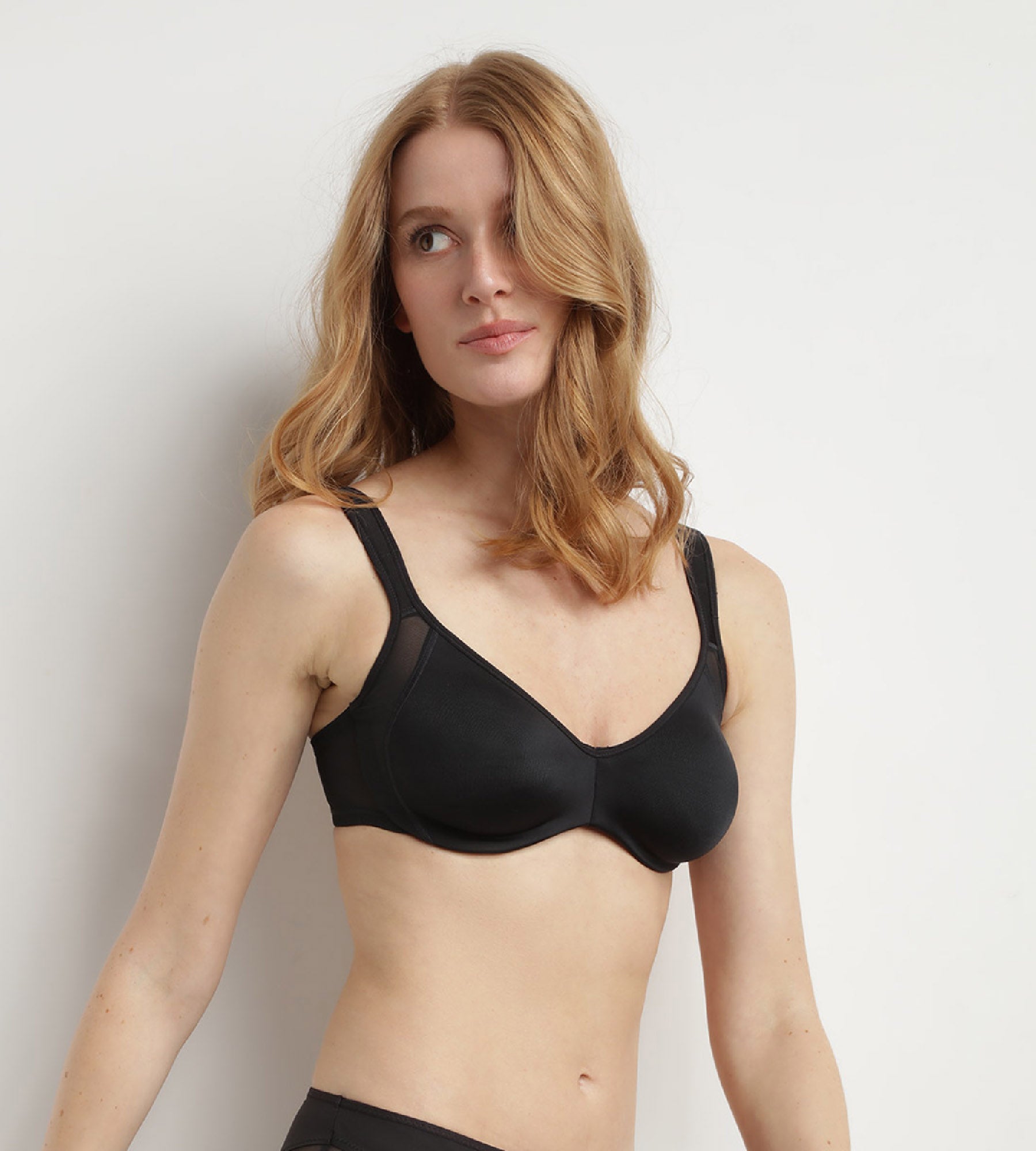 Generous shapes are given pride of place with the Generous Minimizer Dim black underwired bra!