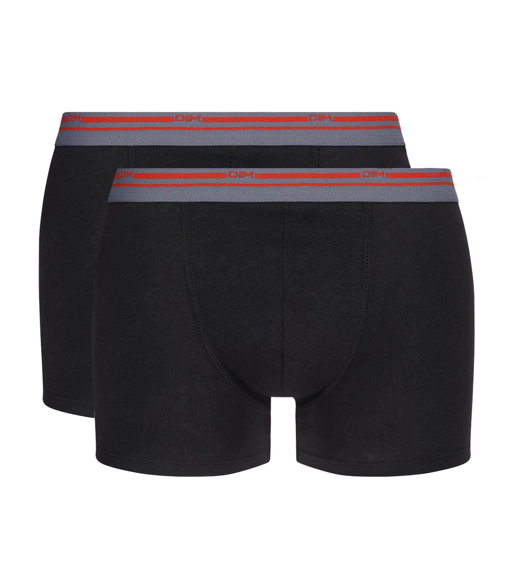 Add subtle texture to your underwear collection with this pack of 2 Daily Colors men’s boxer shorts in black stretch cotton with a touch of red.
