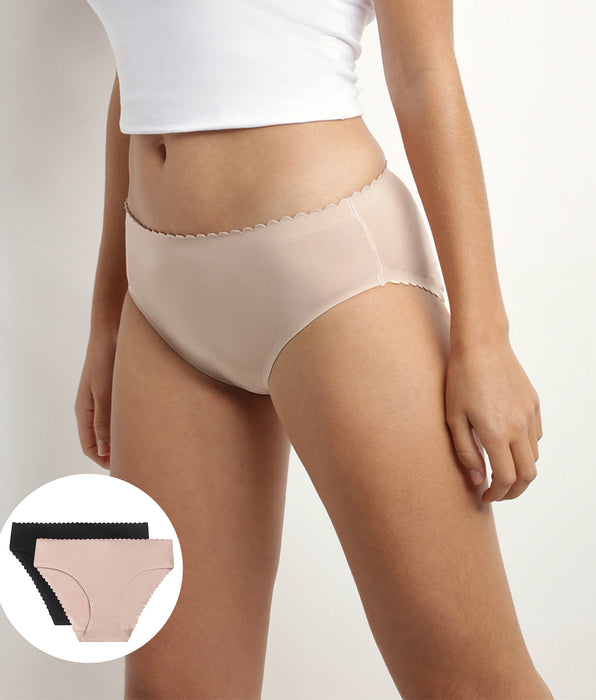 Flirtatiousness and comfort are part of our set of 2 Body Touch Easy invisible knickers in stretch cotton Black and Nude, essential!