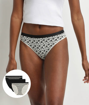 A must-have for women's dressing rooms, the floral motif is featured on this pack of 3 cotton panties stretch Dim Pockets in a more irregular, hand-painted shape. In Black and White, the Les Pockets has a trendy, retro feel. Designed to be worn every day with ease, the black panties The Pockets are made of light, supple stretch cotton with invisible flat edges.