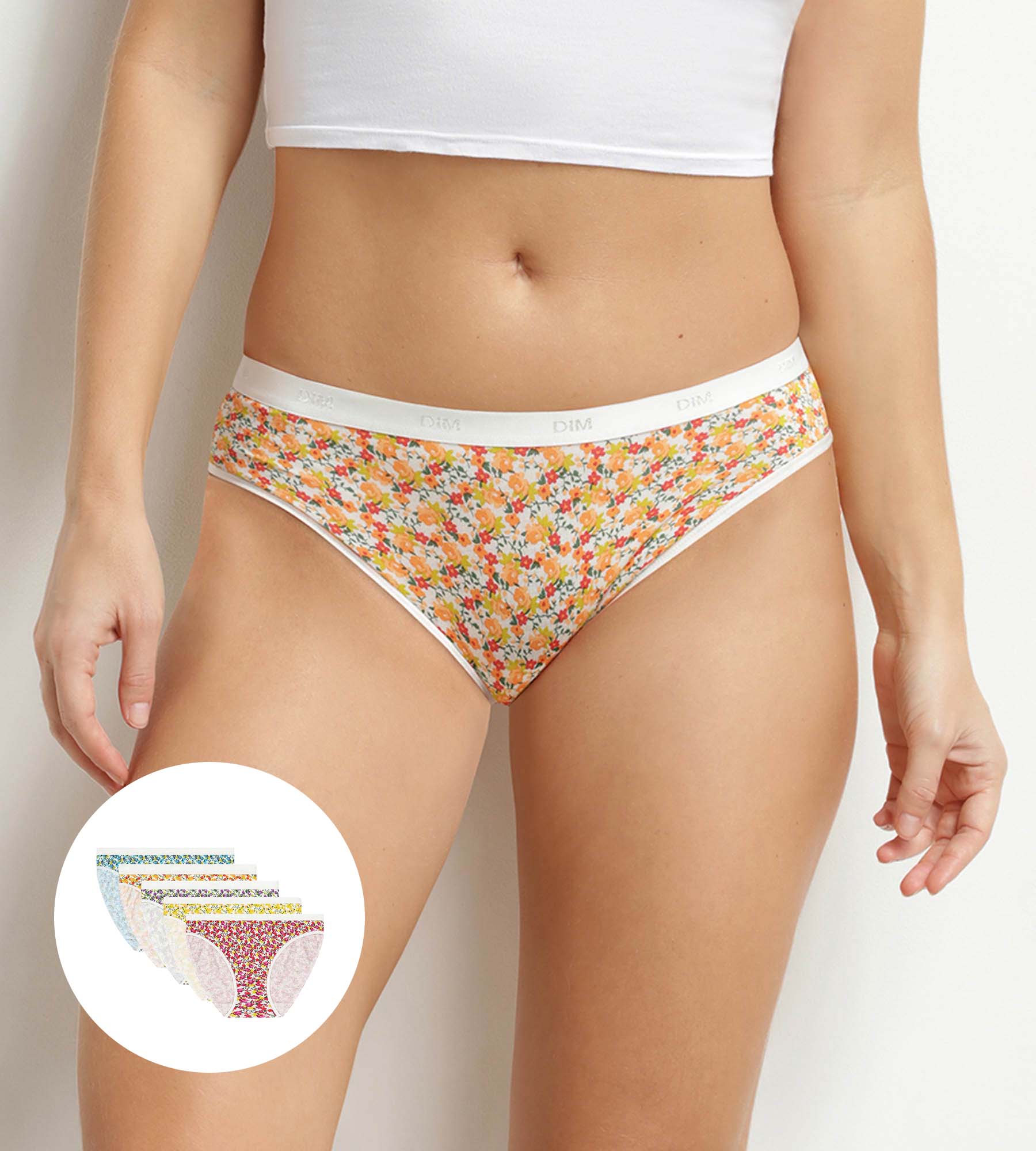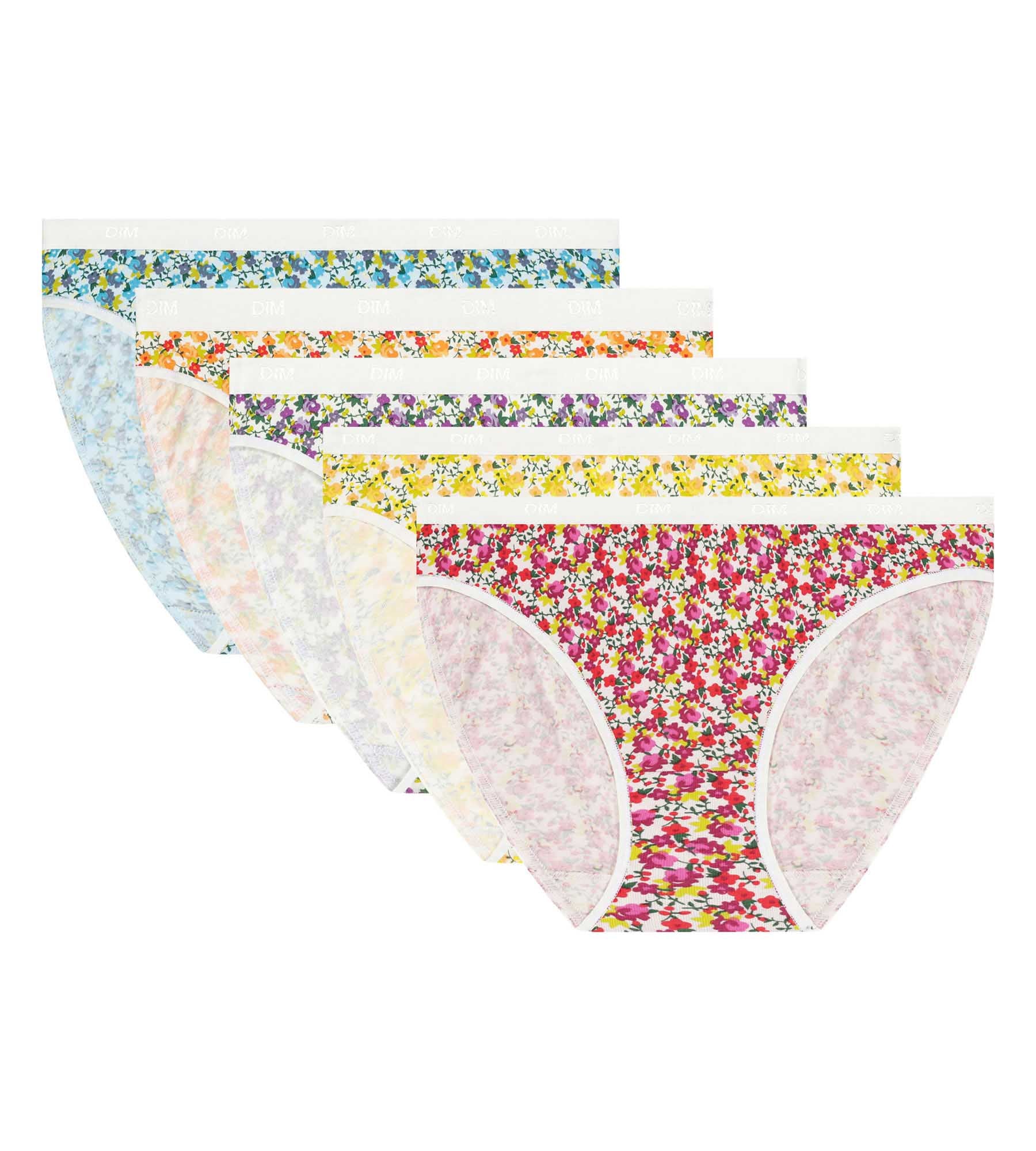 Add a touch of whimsy to your everyday life with this pack of 5 Les Pockets women’s briefs by Dim in stretch cotton with floral prints.
