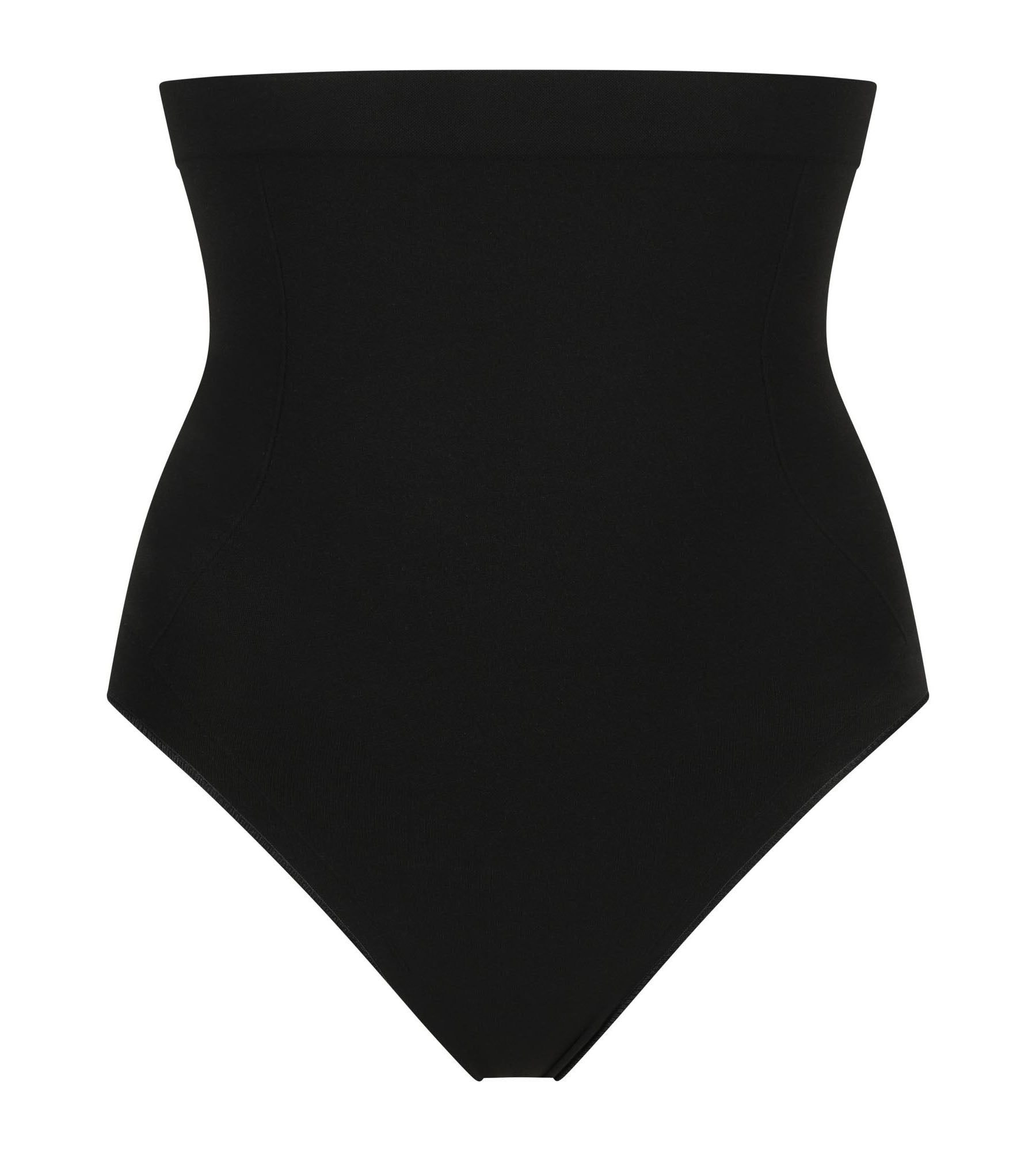 • The high-waisted cut that envelops the tummy and smoothes the waist