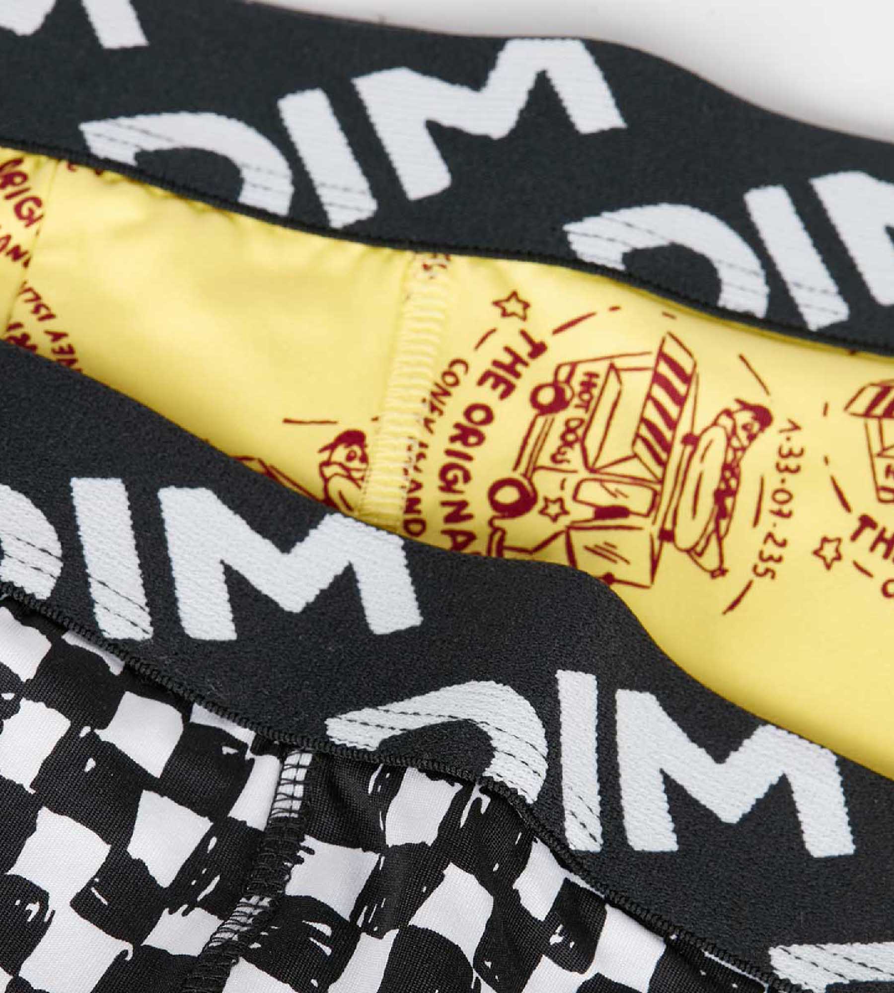 Dim Micro Pack of 2 boys' boxers in recycled microfibre with a checkerboard pattern