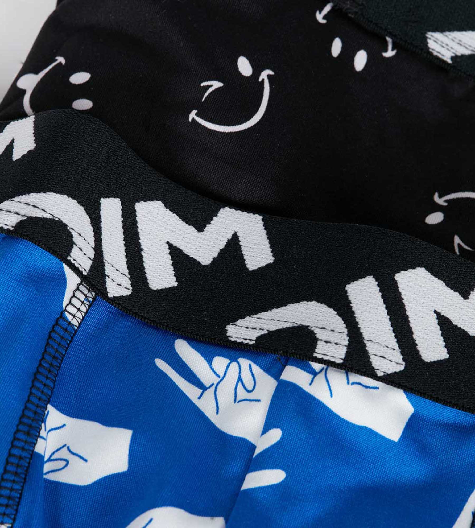 Your teenager loves this set of 2 Children's underwear in recycled fabric Black Blue Dim Micro with positive prints, 100% good vibes!