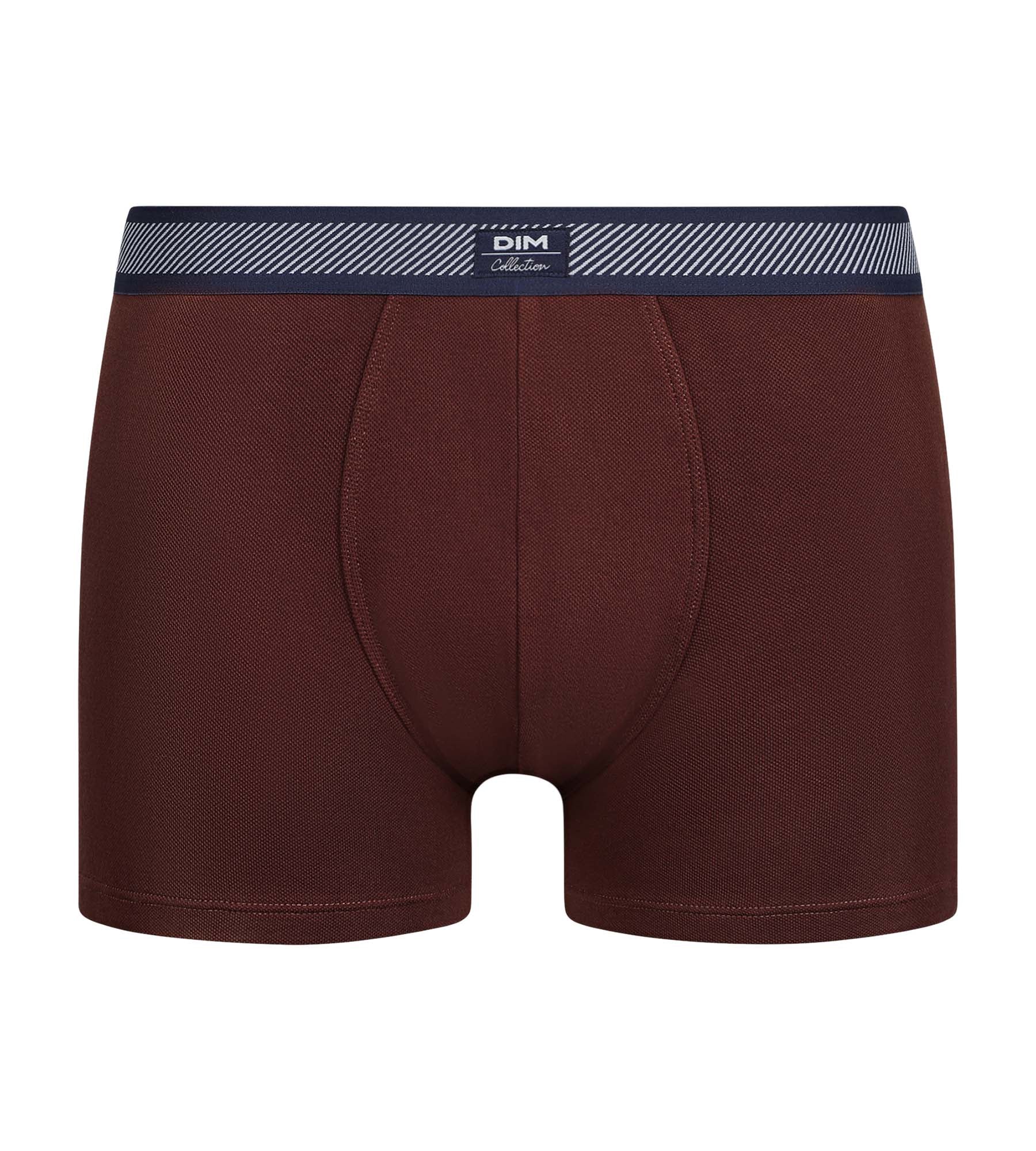 Look both elegant and dynamic with the Dim Smart Rouge Vin men's boxer shorts in piqué cotton with striped waistband!