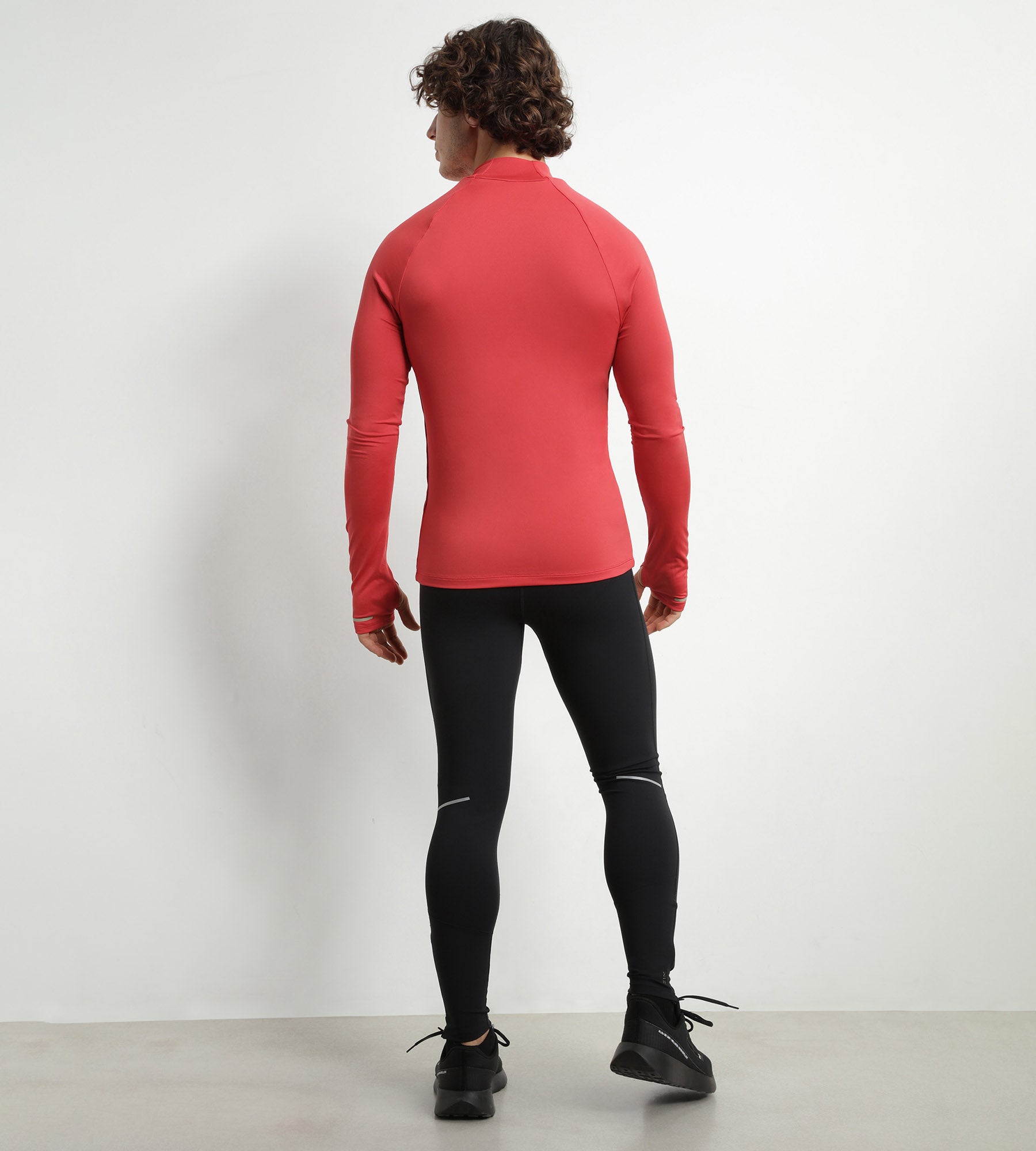 For your outdoor outings, adopt the Red DIM Move microfiber men's sports top with stand-up collar and reflective stripes!