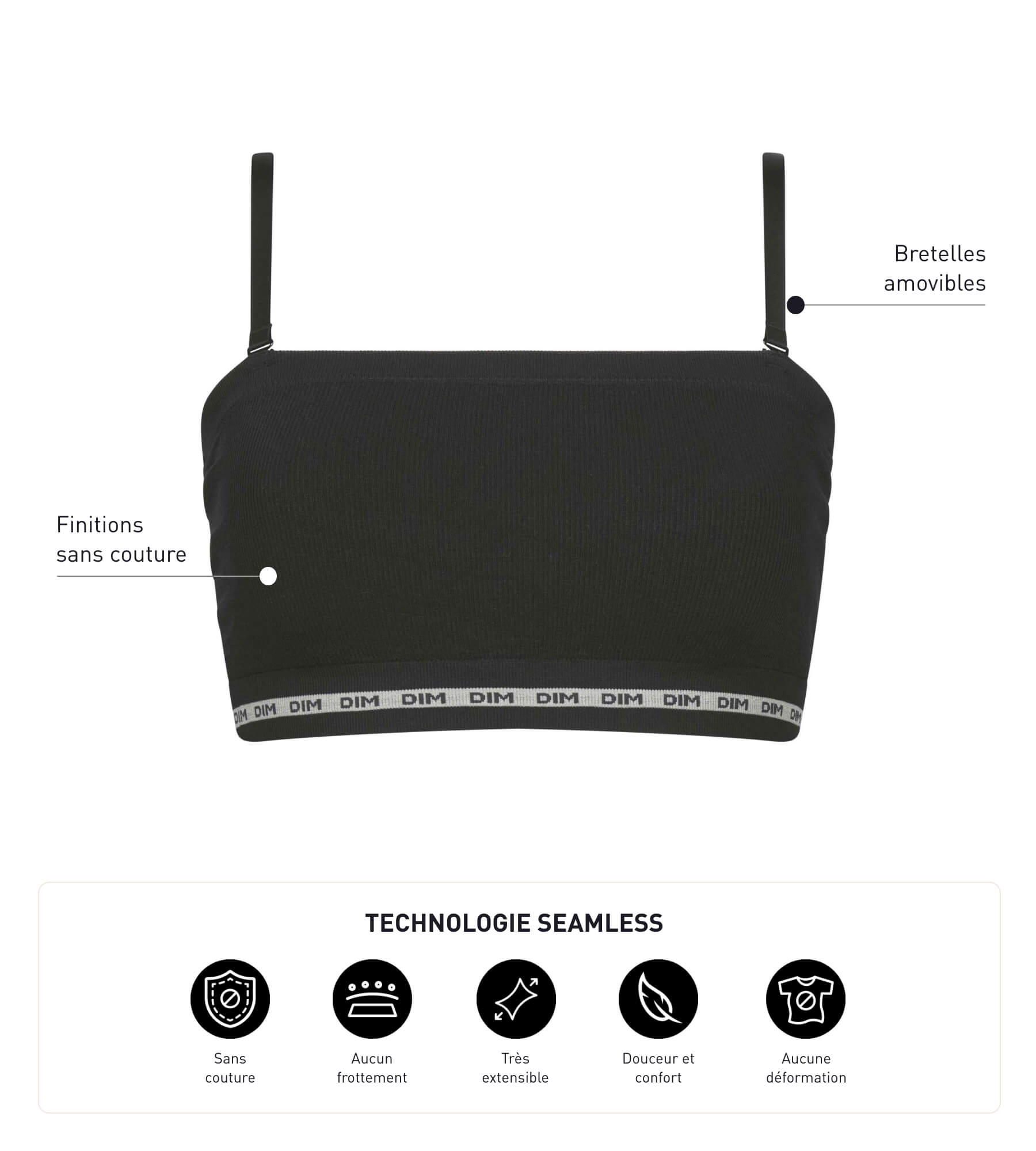 Microfibre wireless Black bandeau bra Dim Icons Seamless