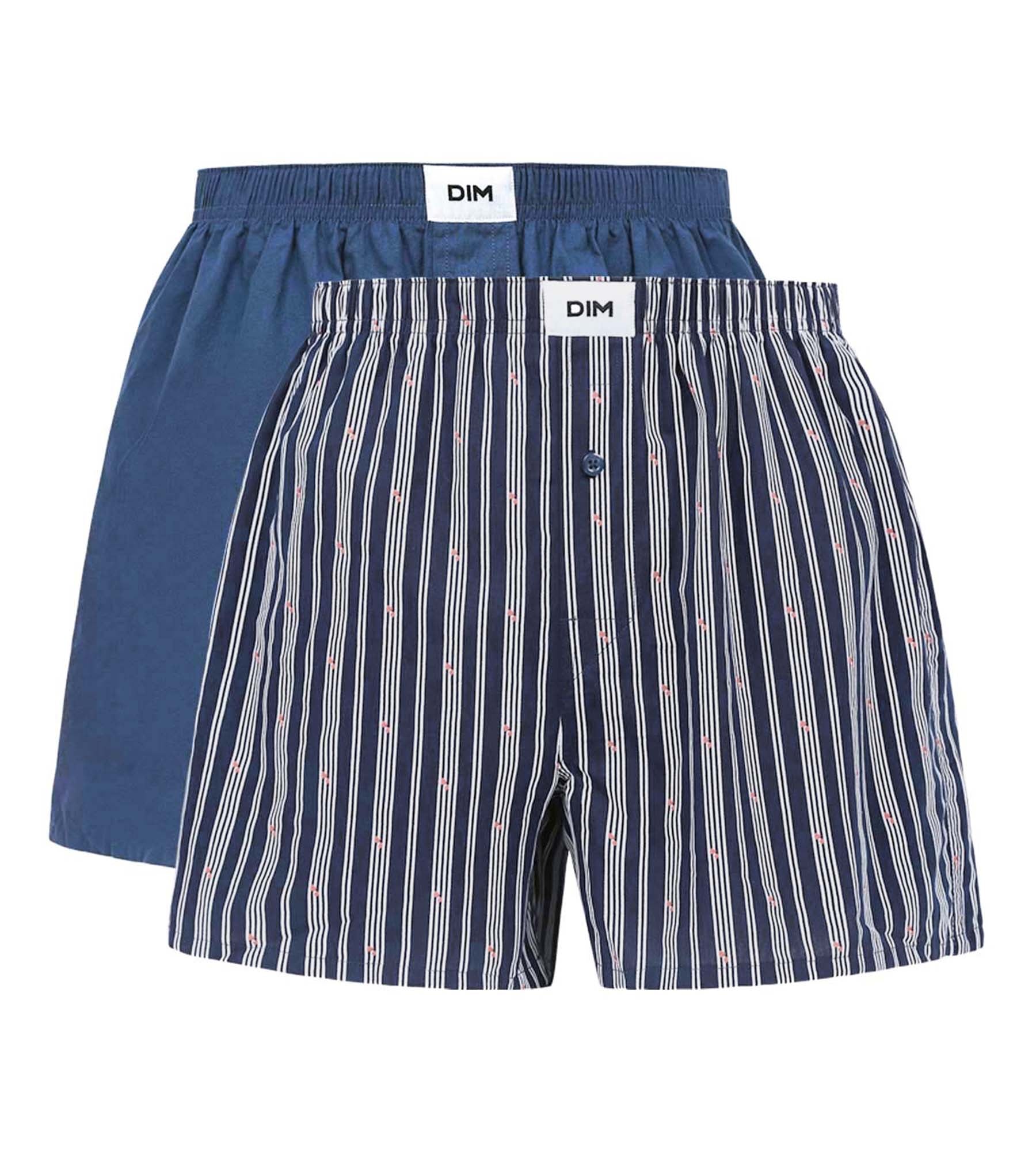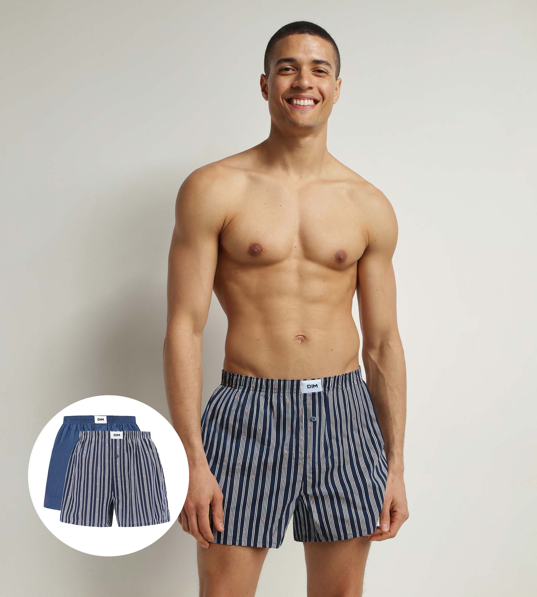 Get a trendy look with this pack of 2 pairs of boxer shorts men's striped Indigo organic cotton Dim Good!