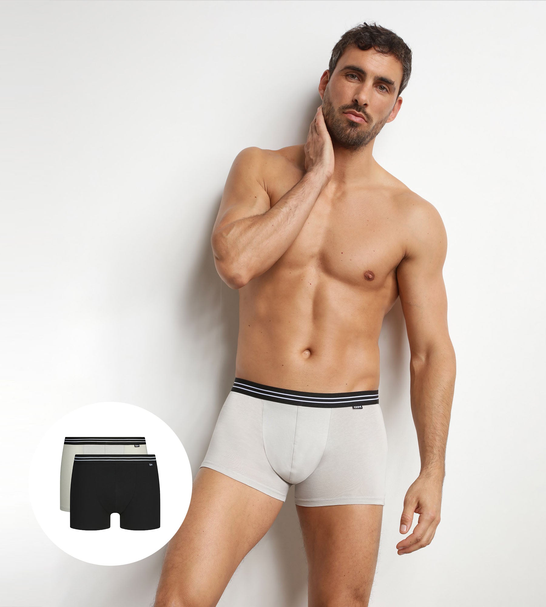 Go straight to the essentials with this pack of 2 men’s boxer shorts that combine comfort, simplicity and efficiency. The stretch cotton naturally envelops the body and moves with you without feeling tight. The fitted cut stays discreetly in place under jeans or more formal trousers. In black or grey, each pair of Dim men’s boxer shorts fits easily into a simple routine with a discreet style. The front lining and flat seams enhance the comfort of these men’s cotton boxer shorts without adding bulk.