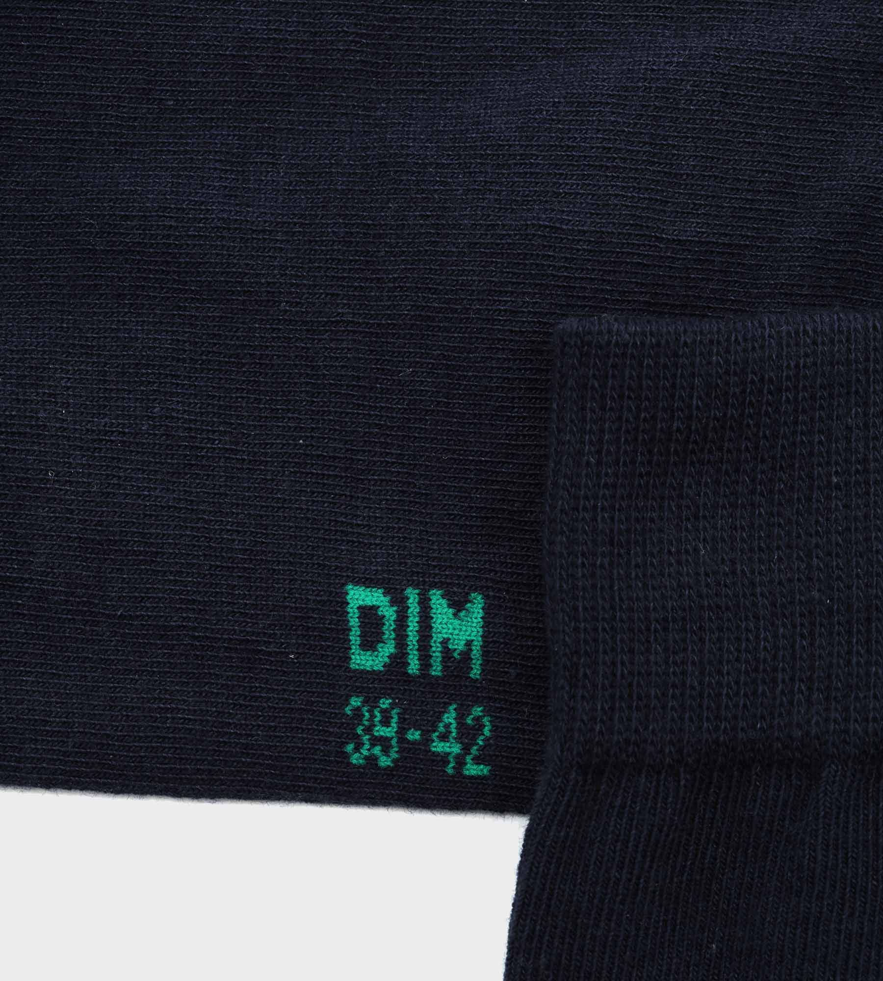 With their simple and effective line, in Navy Blue organic cotton fibres, your plain men's socks complete all your outfits without a false note! Thanks to their construction with flat seams, a soft ribbed edge and lined supports, your Dim Good men's cotton socks are comfortable and durable, even with frequent use!