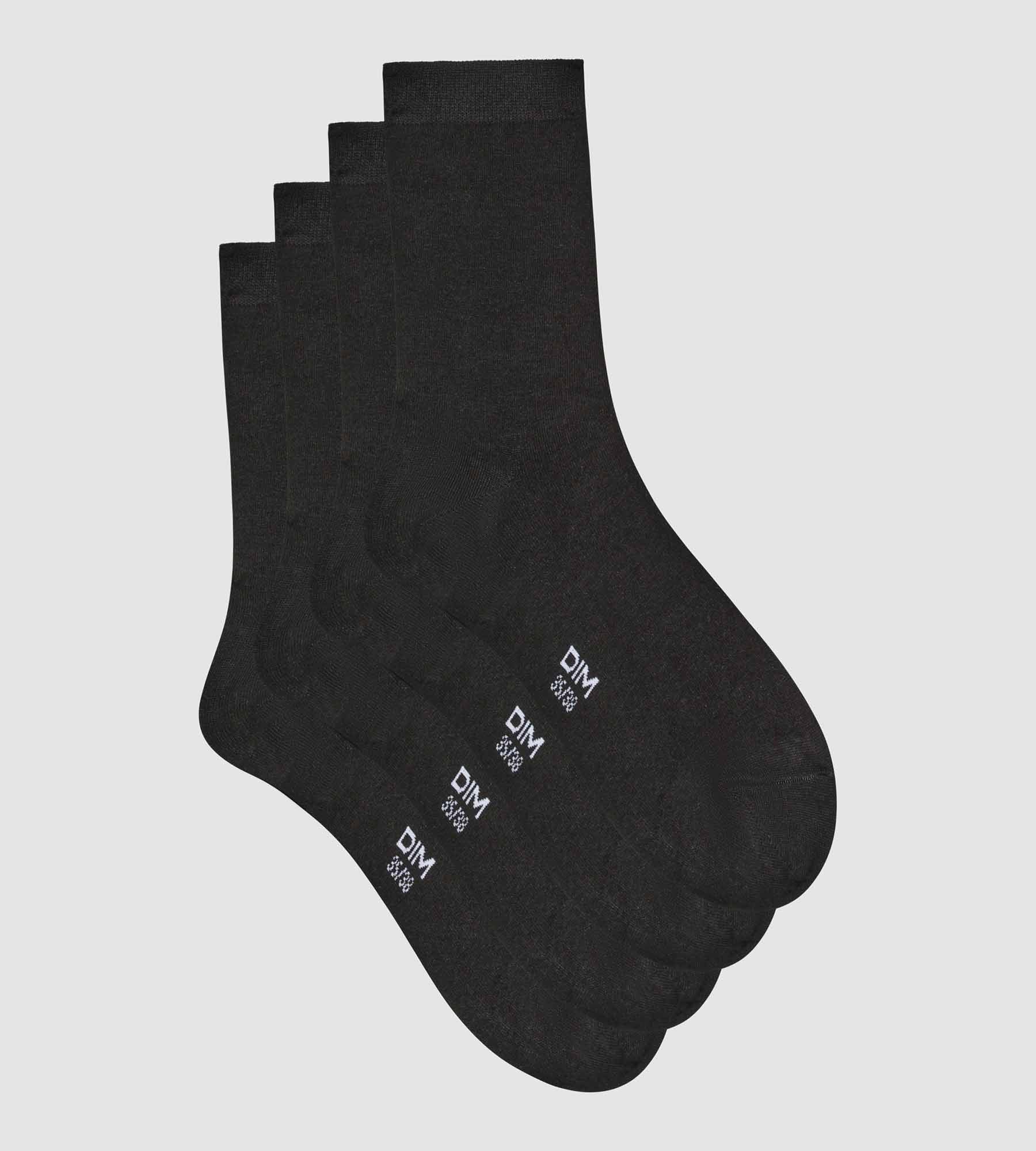 An essential everyday piece, discover the Dim black women's socks in a new version in natural material, with an even silkier appearance. Thanks to its reinforced ends and its stretchy ribbed edge, the pack of 2 pairs of Dim Bambou plain women's socks wraps your feet in comfort. With their more porous fibres, black women's dim socks are more luminous, intense and durable.