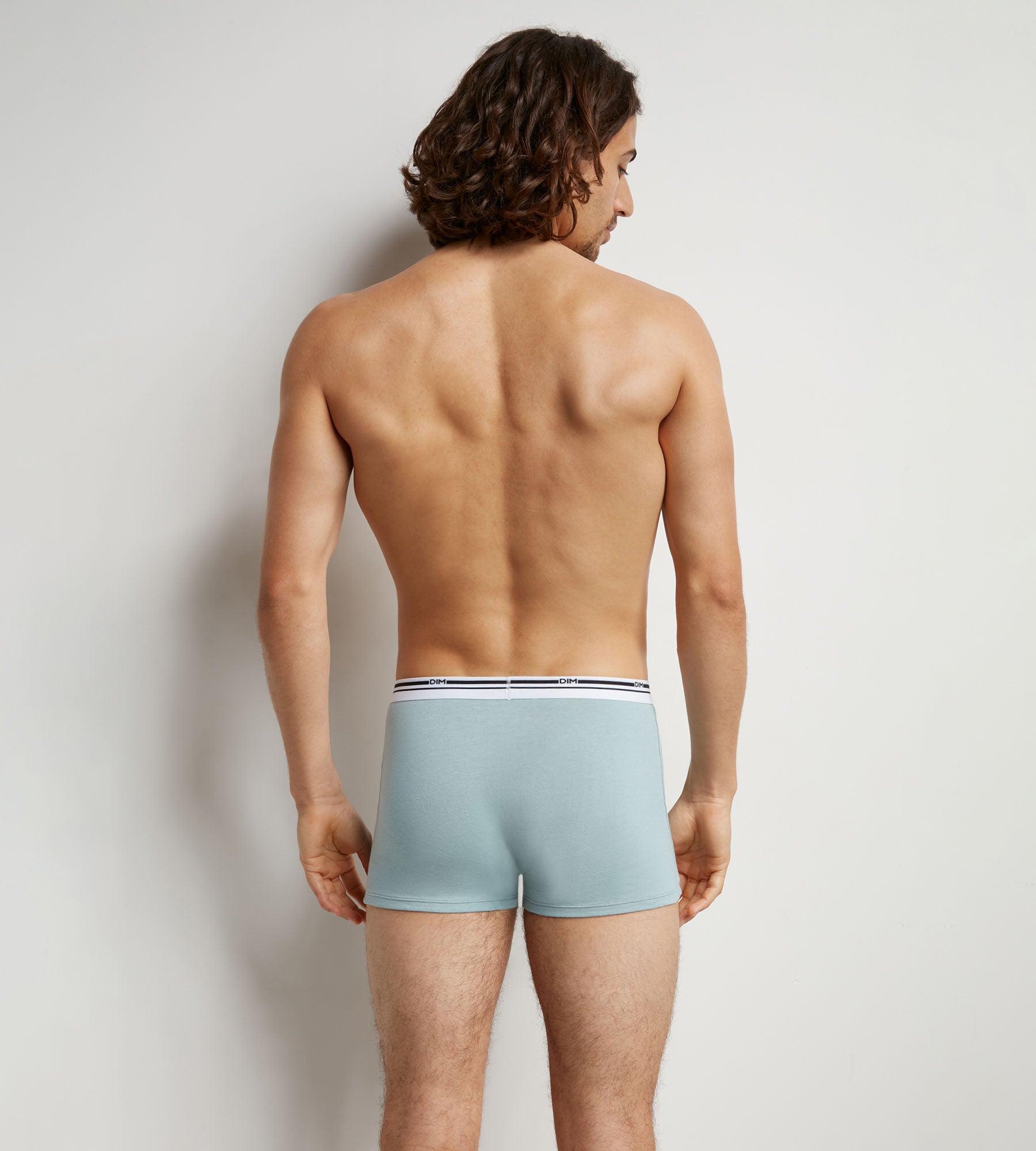 Our collection of Classic colours men's lingerie is growing with new, very cosy colours! On one side, a very contemporary Cold grey cotton men's boxer, on the other, 2 men's underwear in Berlin Blue and Mineral Blue, mysterious and elegant. Thanks to the fitted waistband and the comfort of stretch cotton, our Cotton Underwear offer impeccable support!
