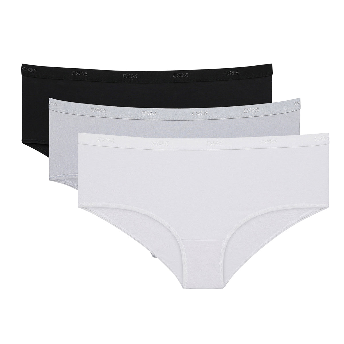 Pack of 3 pairs of Les Pockets Coton boyshorts in black/white/grey