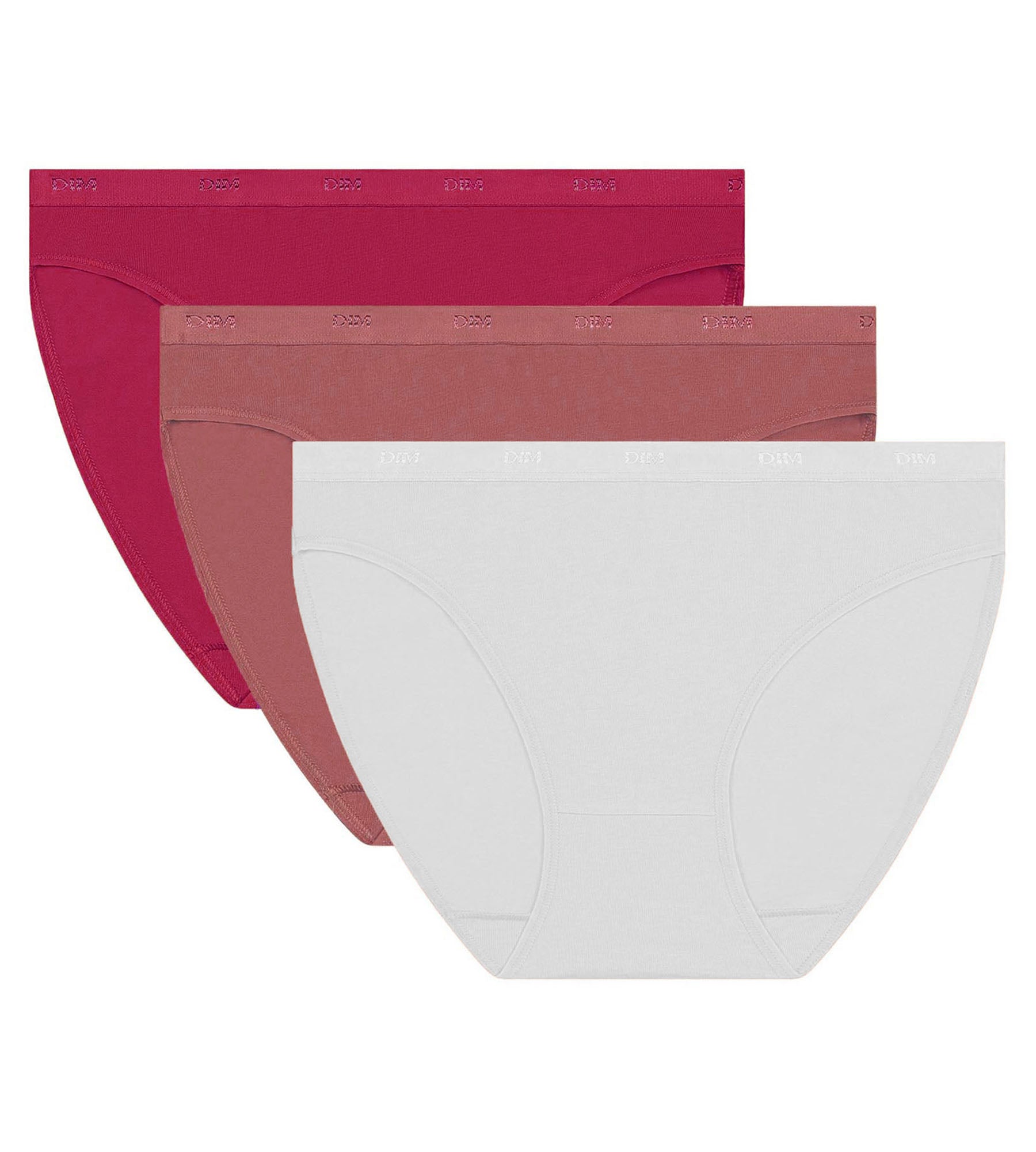 Consisting of vibrant cherry red knickers, soft pink women's briefs and luminous white women's knickers, this trio of Les Pockets Ecodim cotton women's knickers twists your basics with sobriety. Designed to follow your curves without constraint, these women's cotton knickers are stretchy and have flat, comfortable élastic finishes that are invisible under your trousers.