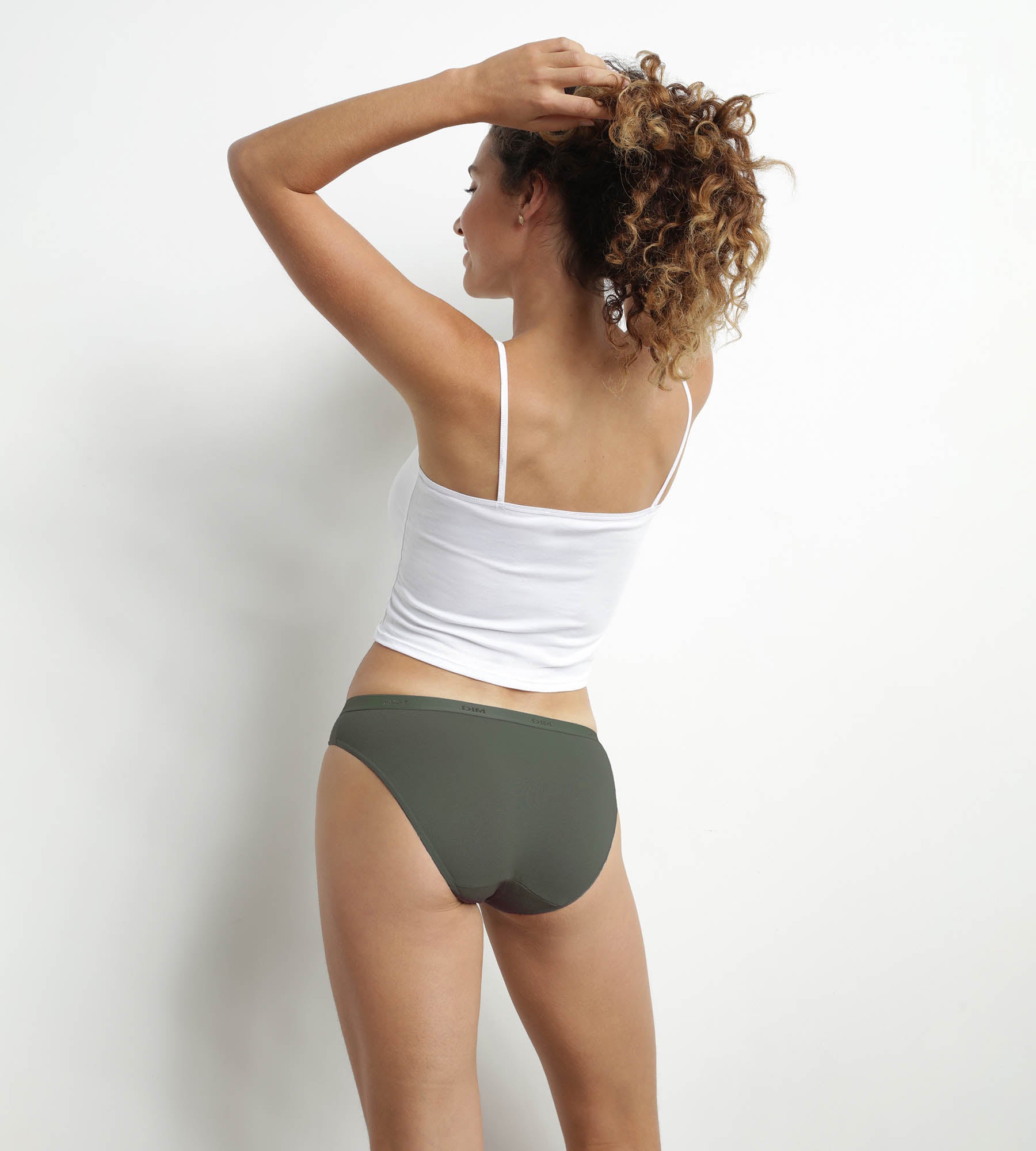 Blending simplicity, comfort and modernity, this Pack of 3 colorful stretch cotton women's panties from Les Pockets EcoDim enhances your lingerie without compromise. With Dim's satin waistband and vivid Grenat Red, Tennis Green and Porcelain Blue colors, Les Pockets EcoDim women's briefs offer feminine, on-trend style to suit your every whim.