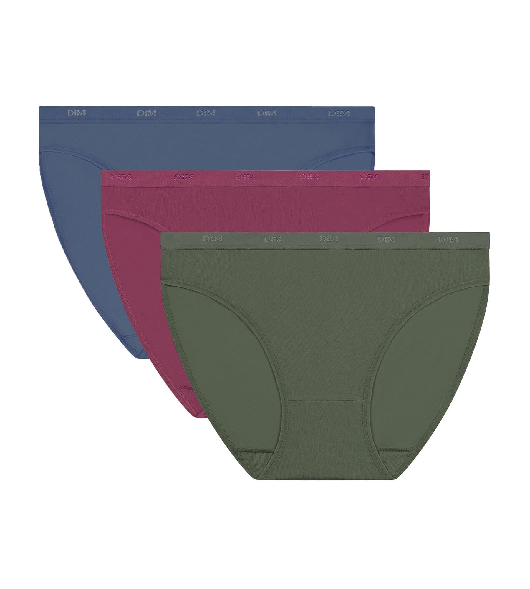 Pack of 3 stretch cotton panties Blue Red Green Les Pockets Ecodim