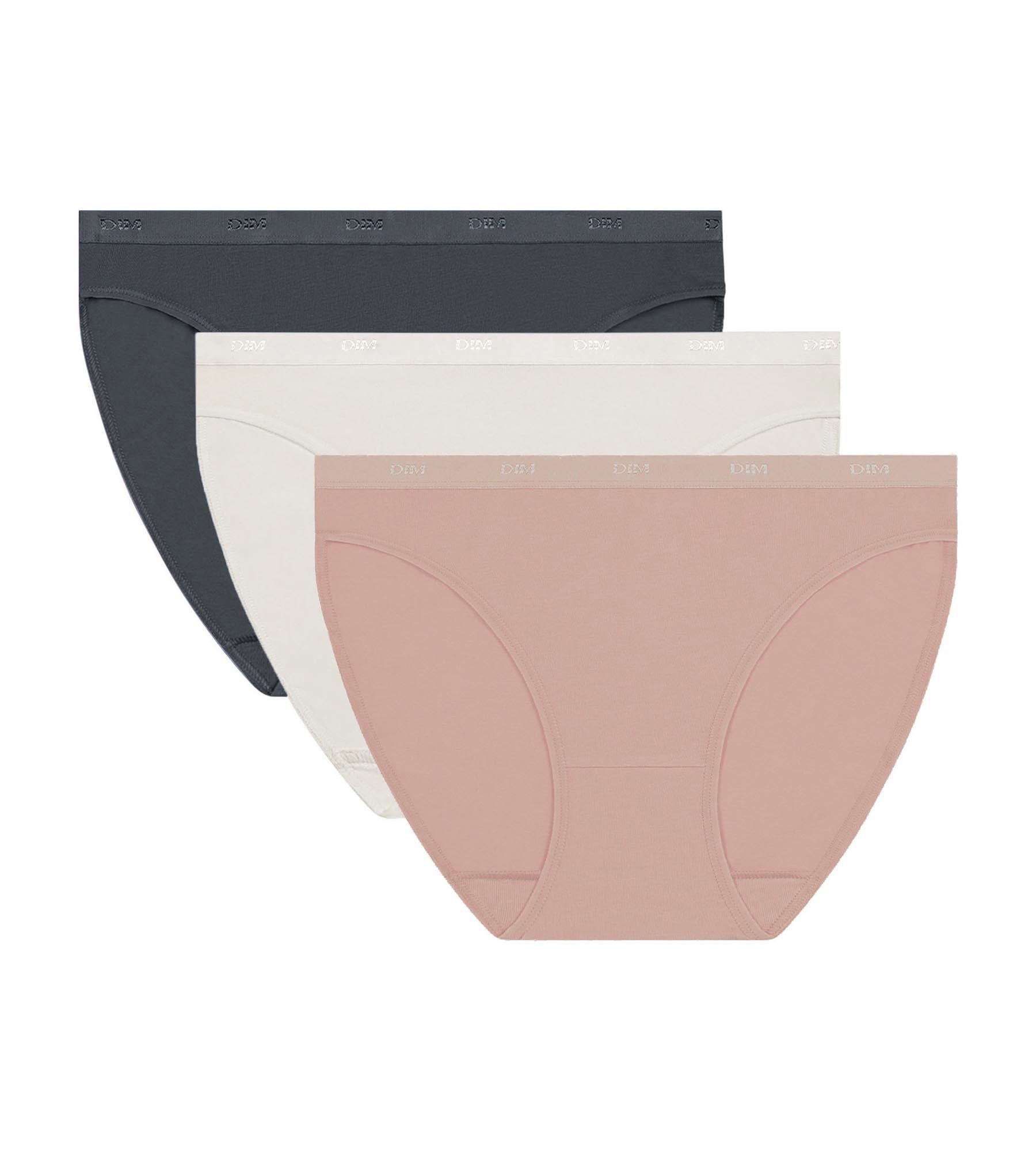 Pack of 3 stretch cotton panties Grey Pink White Les Pockets Ecodim