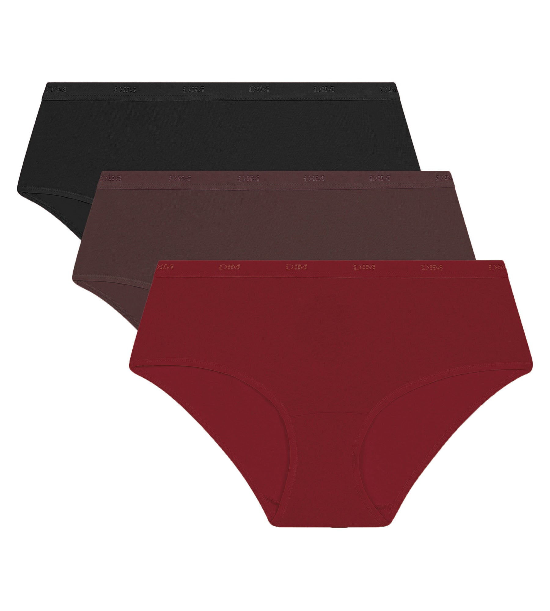 Add some character to your lingerie with this pack of 3 Les Pockets Ecodim women's boxers in Cocoa, Red and Black stretch cotton.