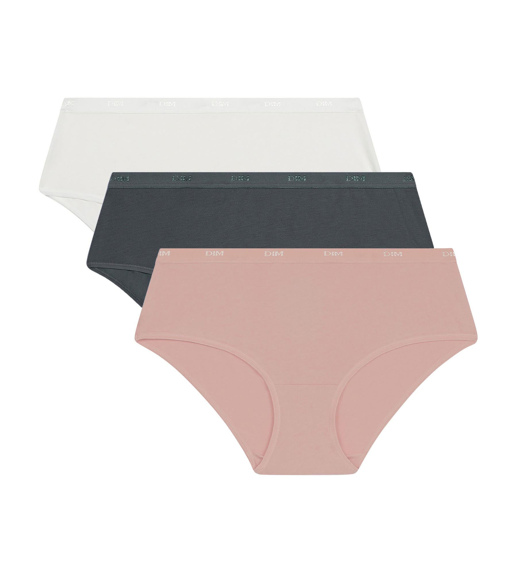 Approach the day with softness and elegance thanks to the Les Pockets EcoDim women's 3-pack of shorties in Grey, Pink and White stretch cotton.