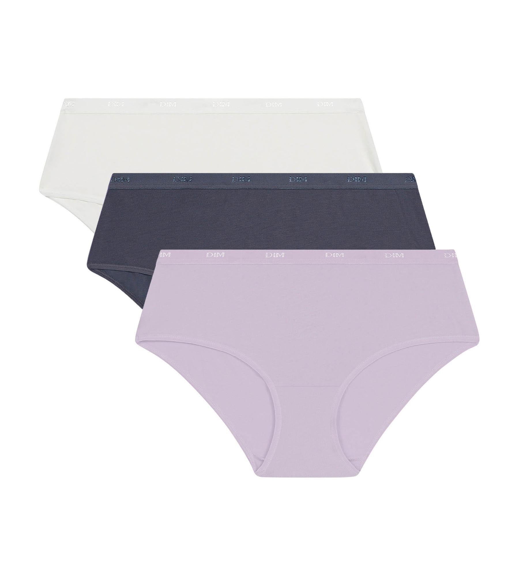 Add a touch of softness and modernity to your lingerie with the Les Pockets EcoDim Pack of 3 women's shorties in Lila, White and Blue stretch cotton!