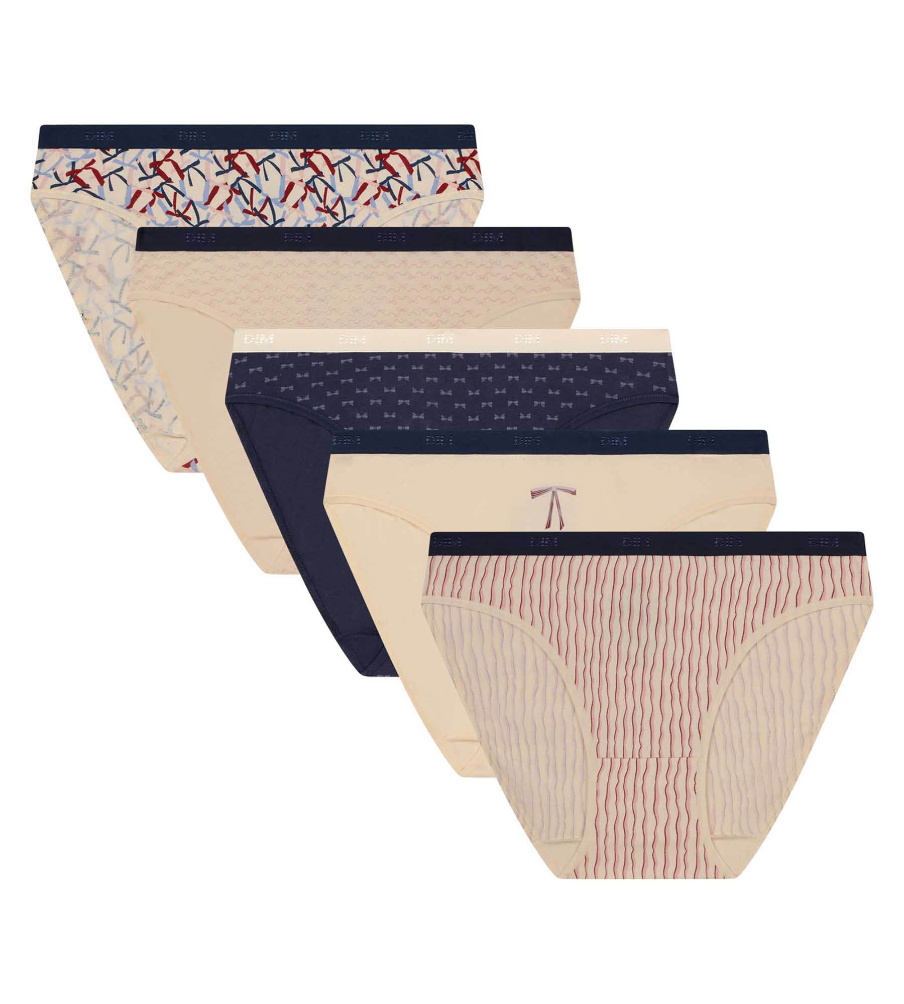 Bring a touch of whimsy to your everyday life with this pack of 5 Dim Les Pockets women's knickers featuring a graphic ribbon pattern.