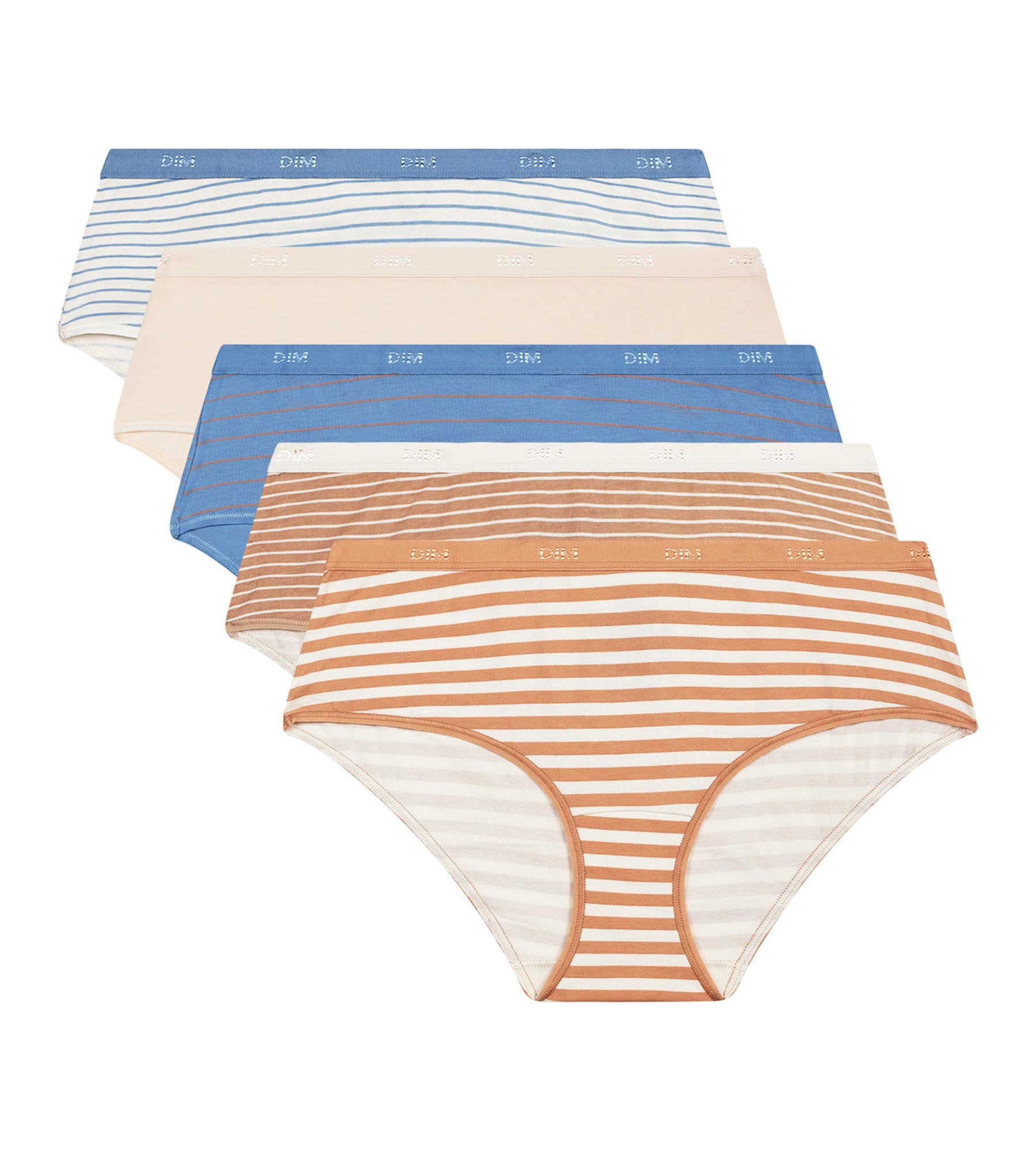 Pack of 5 women's stretch cotton shorties Beige Blue with stripes Les Pockets