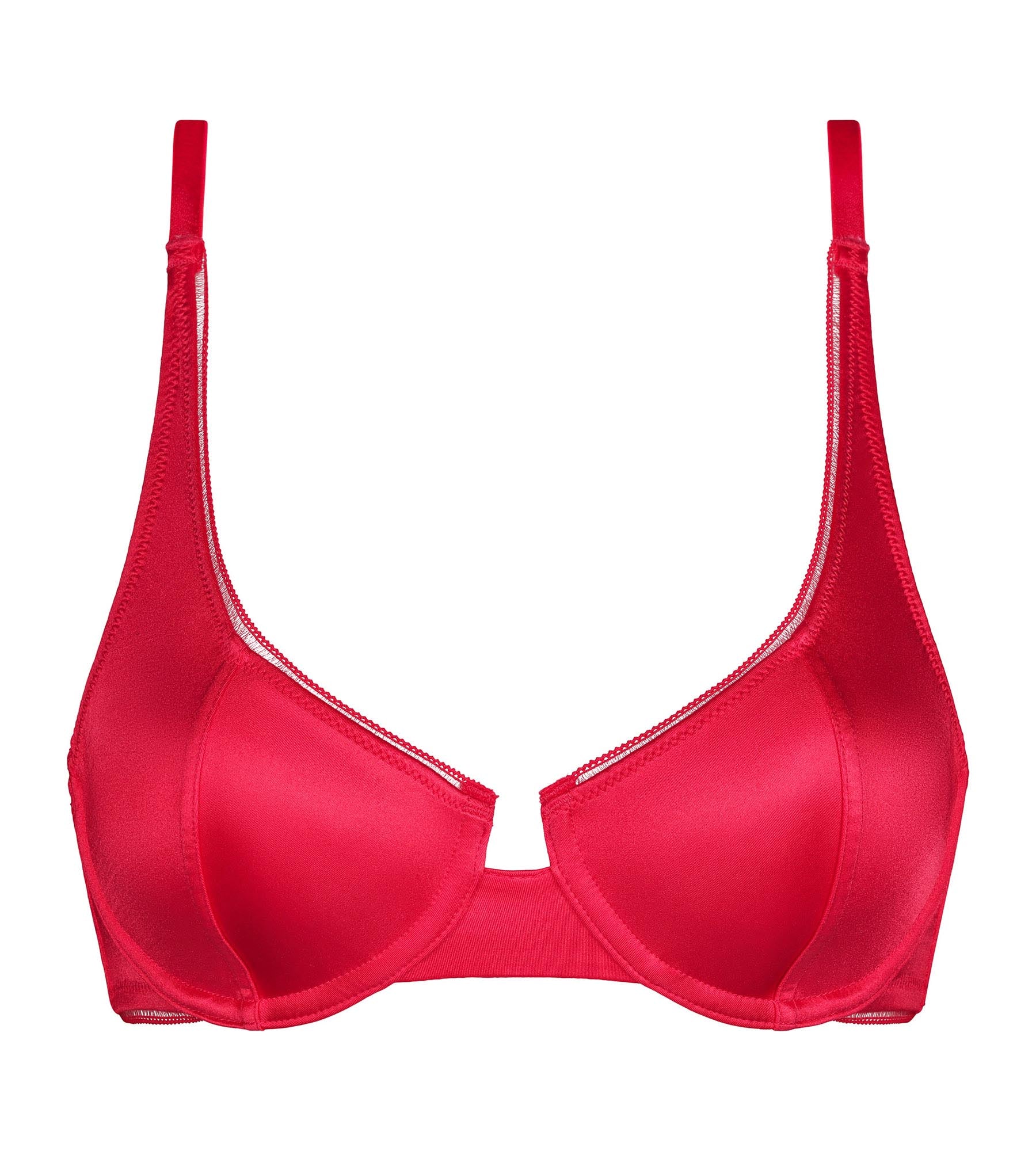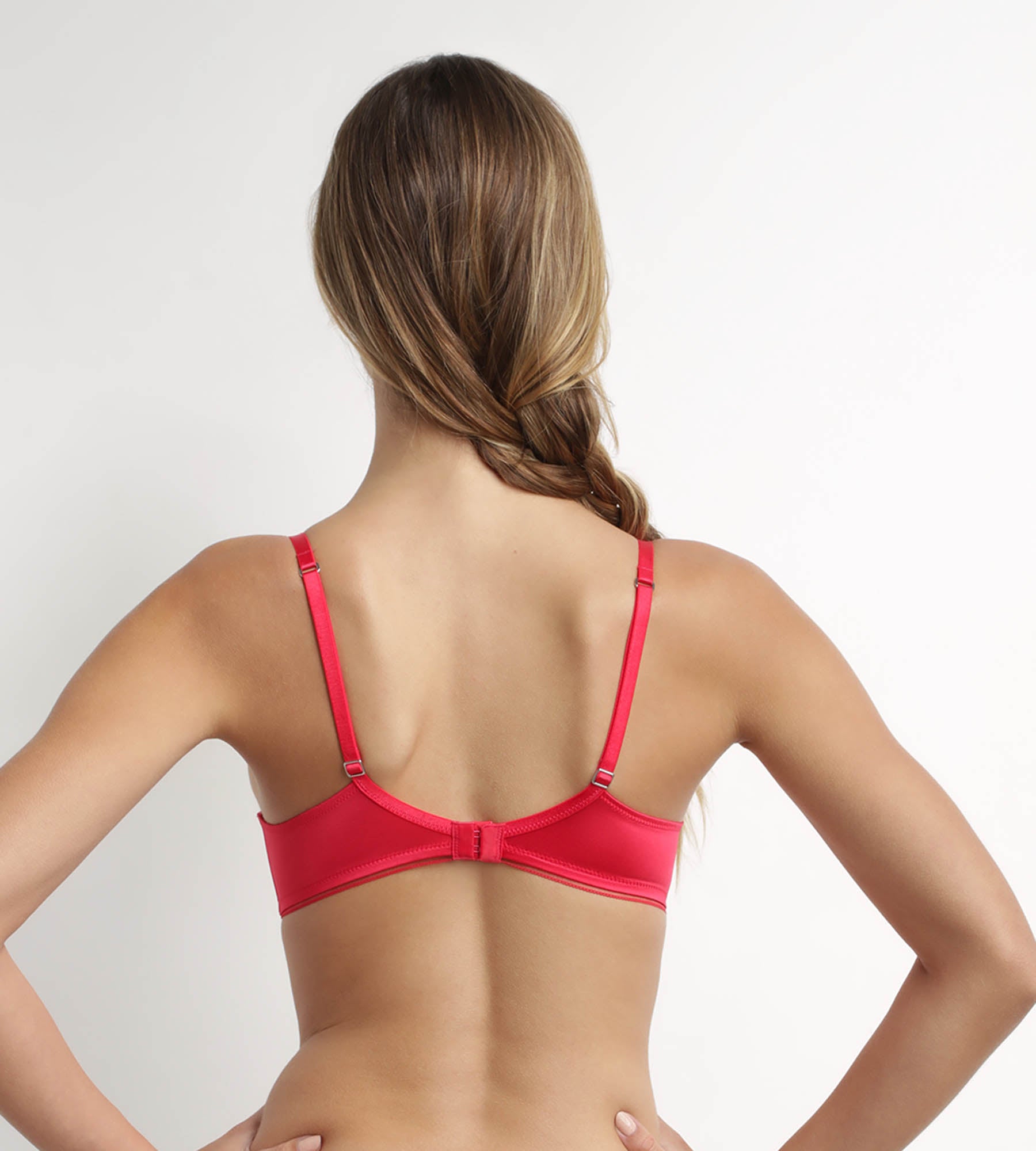 Sport a chic, modern look with the Dim Chéri corbeille bra in Red satin microfiber!