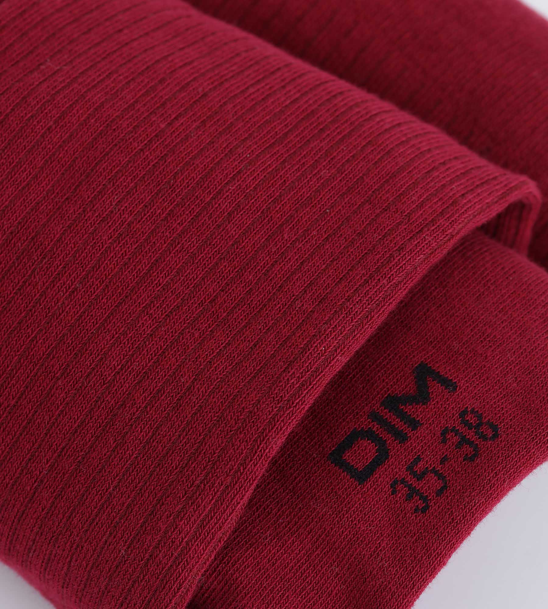Inspired by French style, these women's high socks blend comfort with couture style. Their fine rib knit pairs perfectly with a mini skirt or dressy shorts for an elegant look. The Rumba Red colour adds character to your outfits, without overpowering them. A piece from the Dim x Inès de La Fressange collaboration, easy to adopt into your everyday wardrobe.