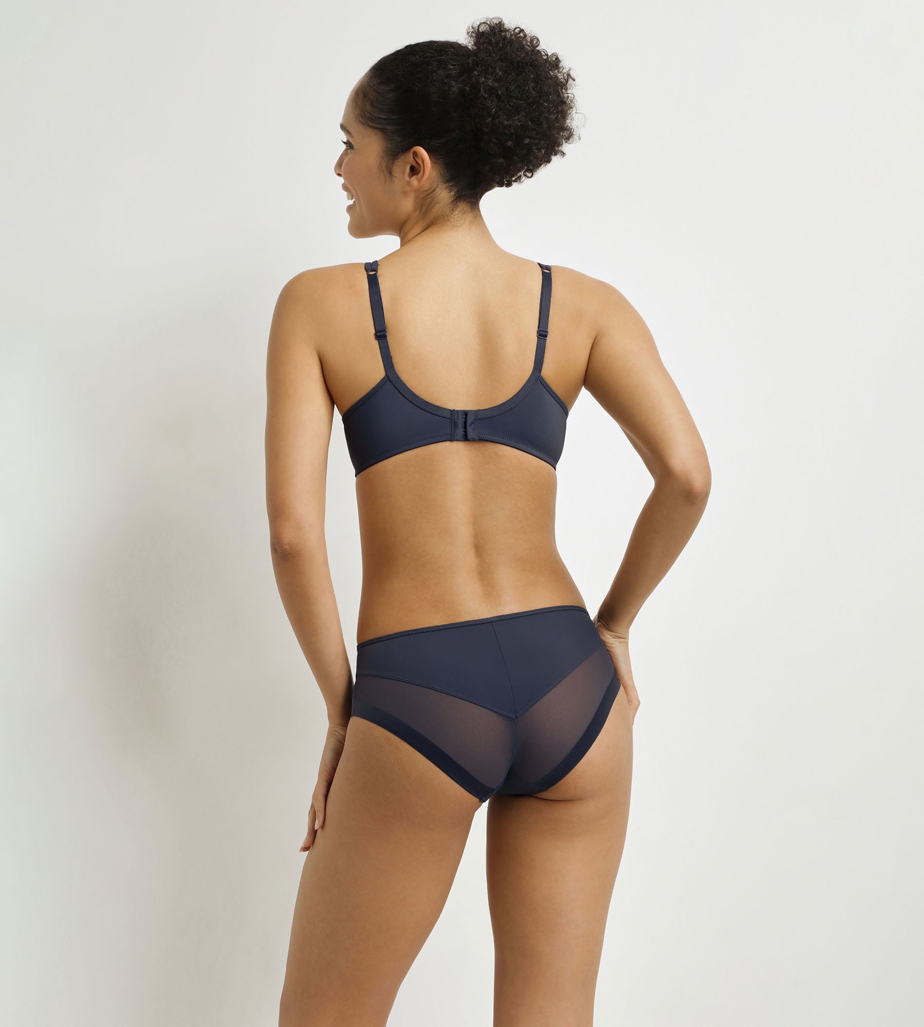 With its neat lines and deep, understated Formal Blue colour, these Generous women's knickers from Dim will fit naturally into your lingerie drawer. The stretchy, velvety fabric moves with you without feeling restrictive, while the sheer tulle subtly structures the pelvis and buttocks. Thanks to its higher hip cut and flat finish, the Generous Dim microfibre panty is comfortable and invisible under clothing, for uncompromising everyday wear.