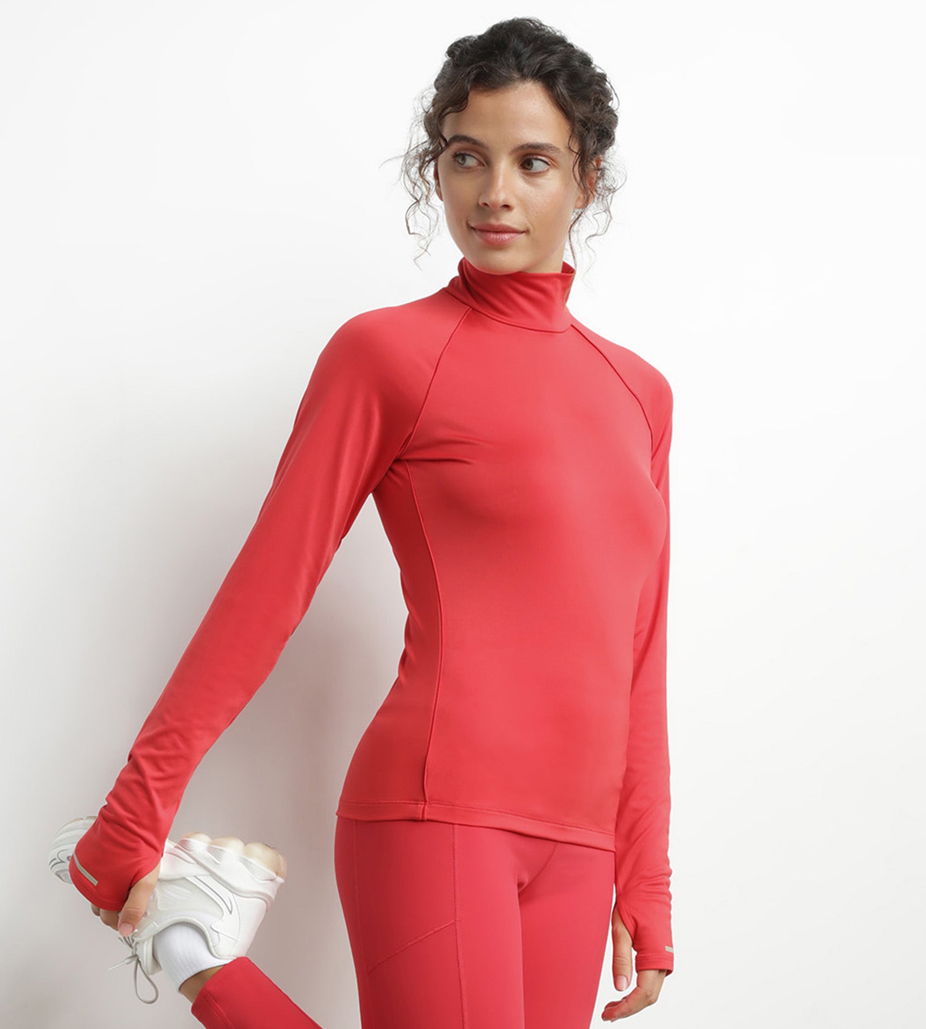 Bold and high-performance, the DIM Move women's high-neck sports top in Red microfiber!