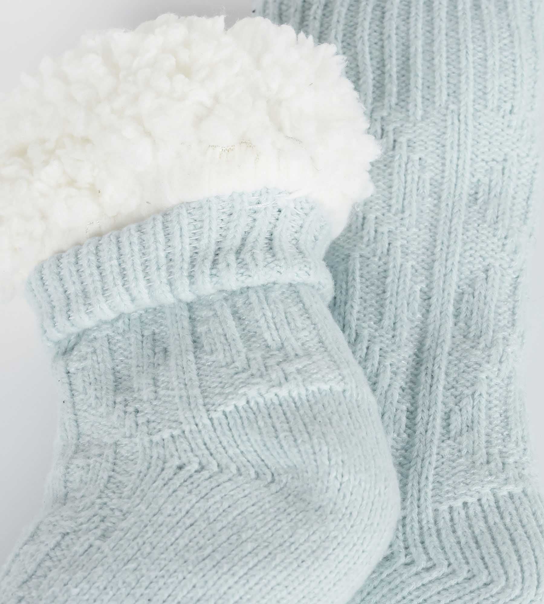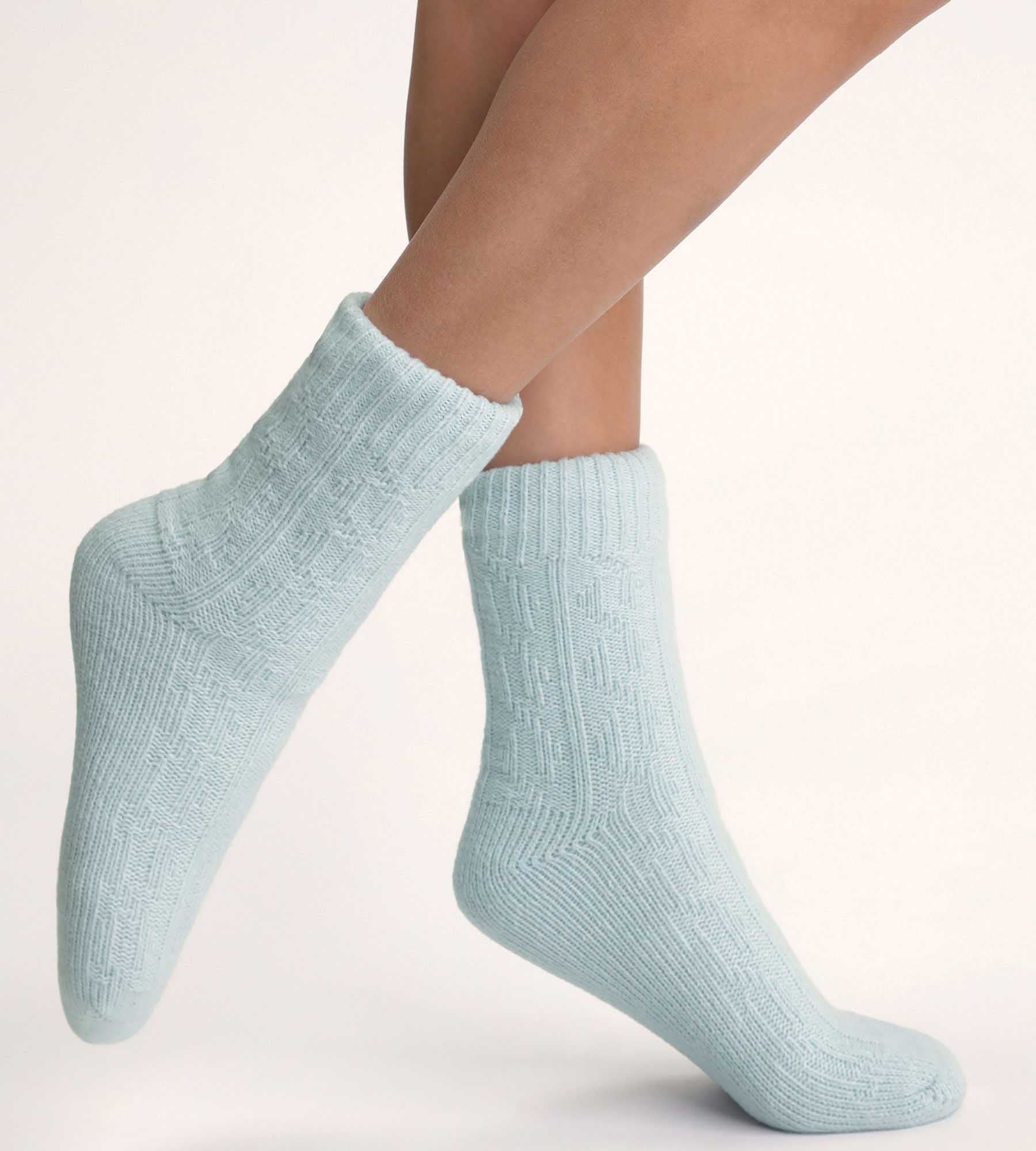 Catch the Dim Cocoon Polaire women's warm socks in light blue knit, your allies for tackling winter!