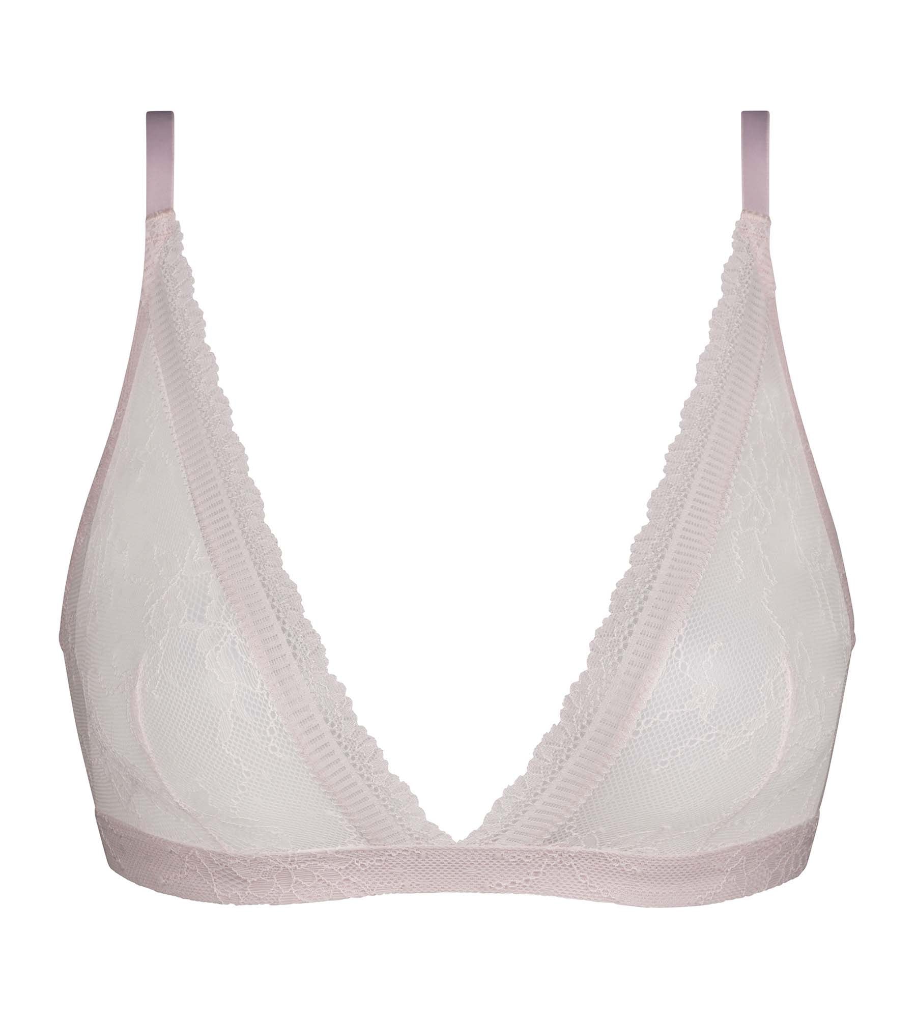 Designed without underwiring, with light cups and a slender bottom, the Dim Romance triangle bra hugs the bust naturally and is perfect for everyday wear. The discreet floral motif and lace braid finish on the neckline accentuate the delicate style of this Lilac bra.
