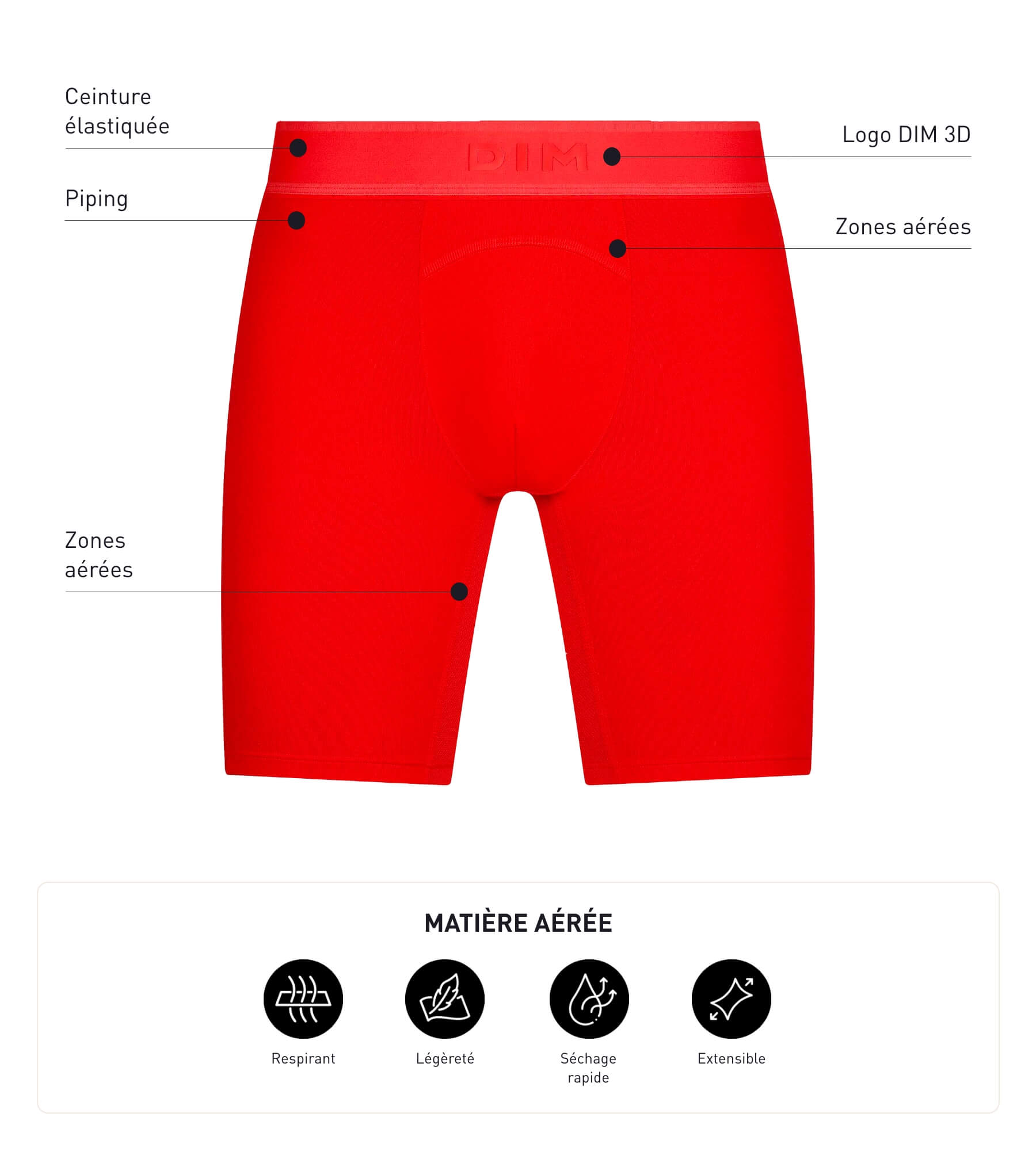 Designed to combine support, breathability and freedom of movement, these Dim Move men's long boxer briefs are the ideal ally for your intensive training sessions, active days or workouts. With strategically placed mesh zones, the Dim Move Men's Sport Boxer provides targeted ventilation and long-lasting comfort. With invisible flat edges that évit friction, the Dim Move Men's Boxer Wear like a second skin under all your clothes.