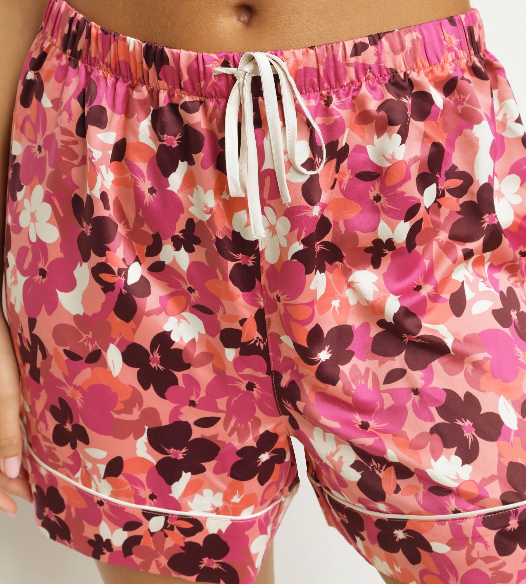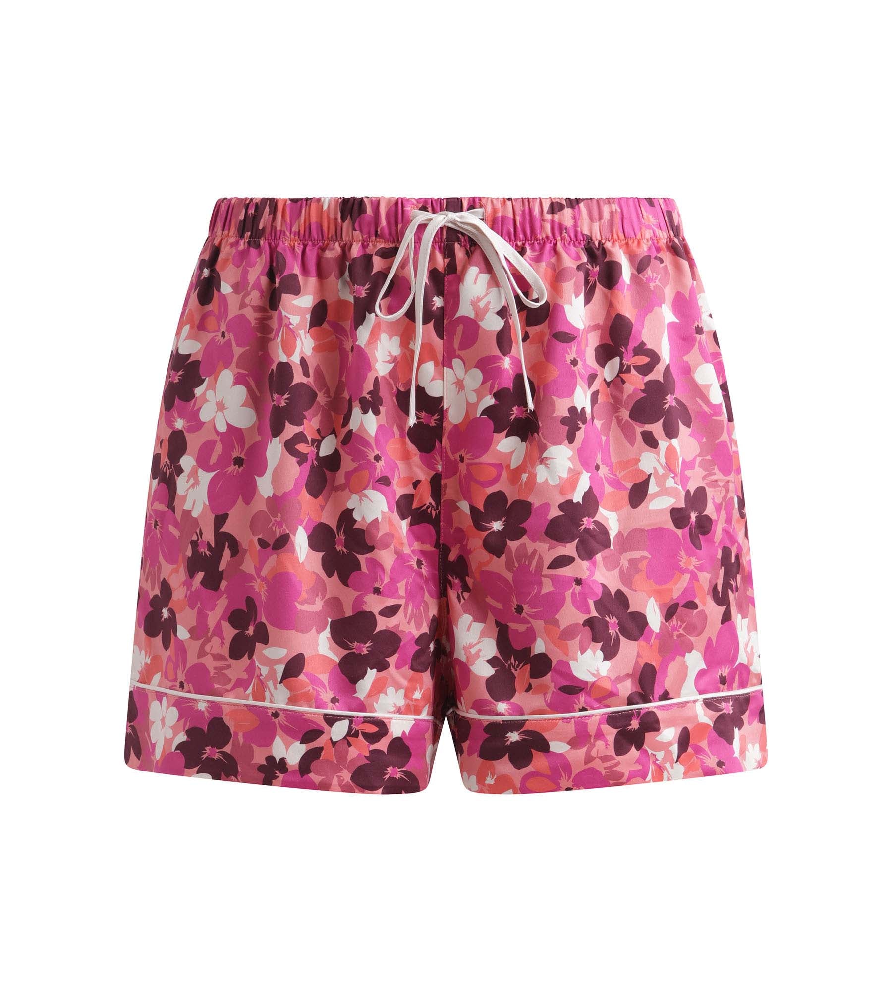 With its bold floral print, these Dim Don't Disturb satin fig women's shorts add a fresh touch to your nighttime ensemble. With its light and soft fabric, this loungewear piece glides over the skin and offers unrivalled comfort, day or night. Its wide, relaxed shape gives you absolute freedom of movement, and its elasticated waistband adjusts perfectly to your figure without causing discomfort. We love the palette of pink, fig and burgundy tones and the delicate finishing touches that add a feminine touch to these pyjamas.