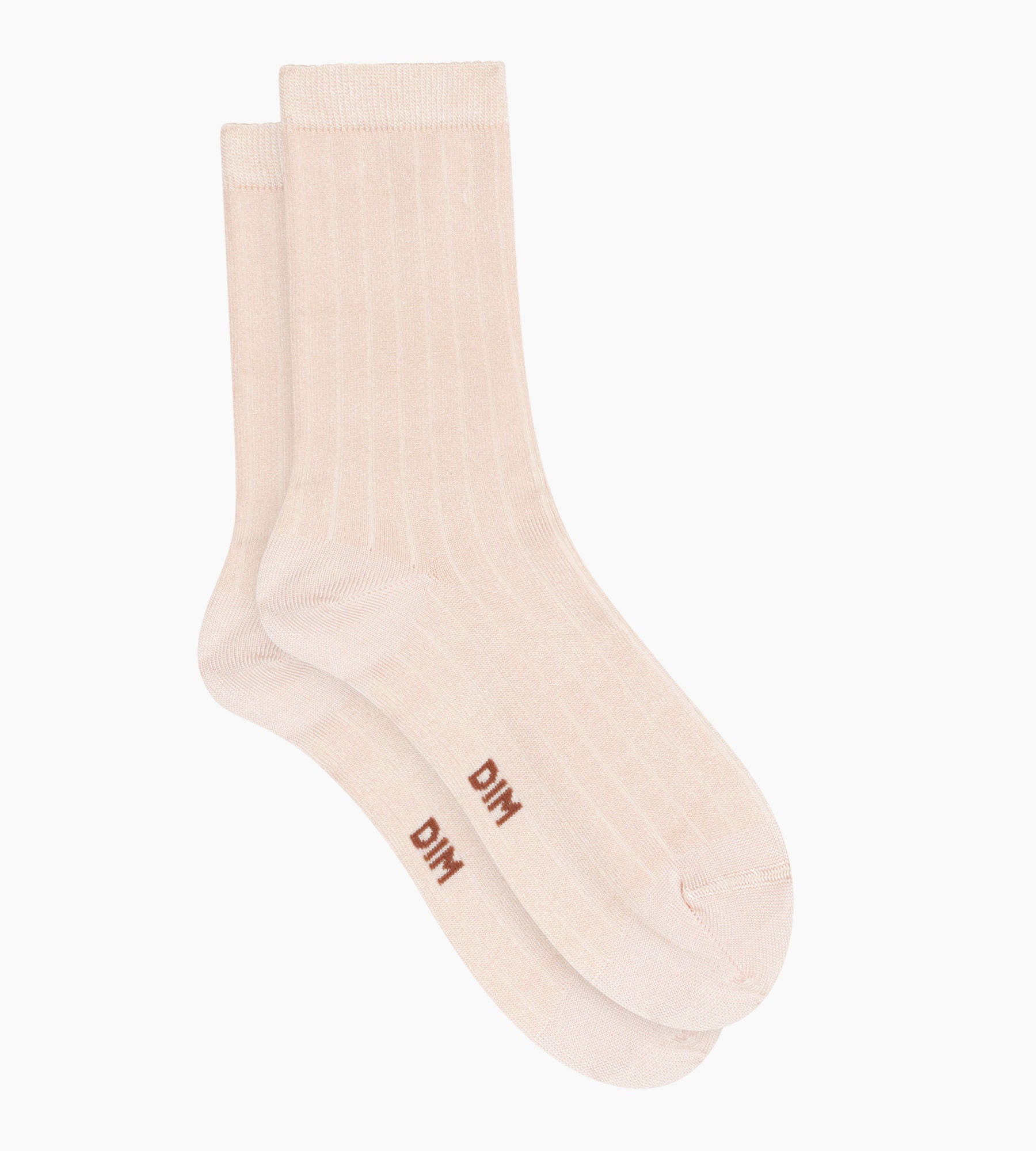 In this Ivory version, Dim Mode satin cotton women’s socks revisit your basics with a modern ribbed finish.