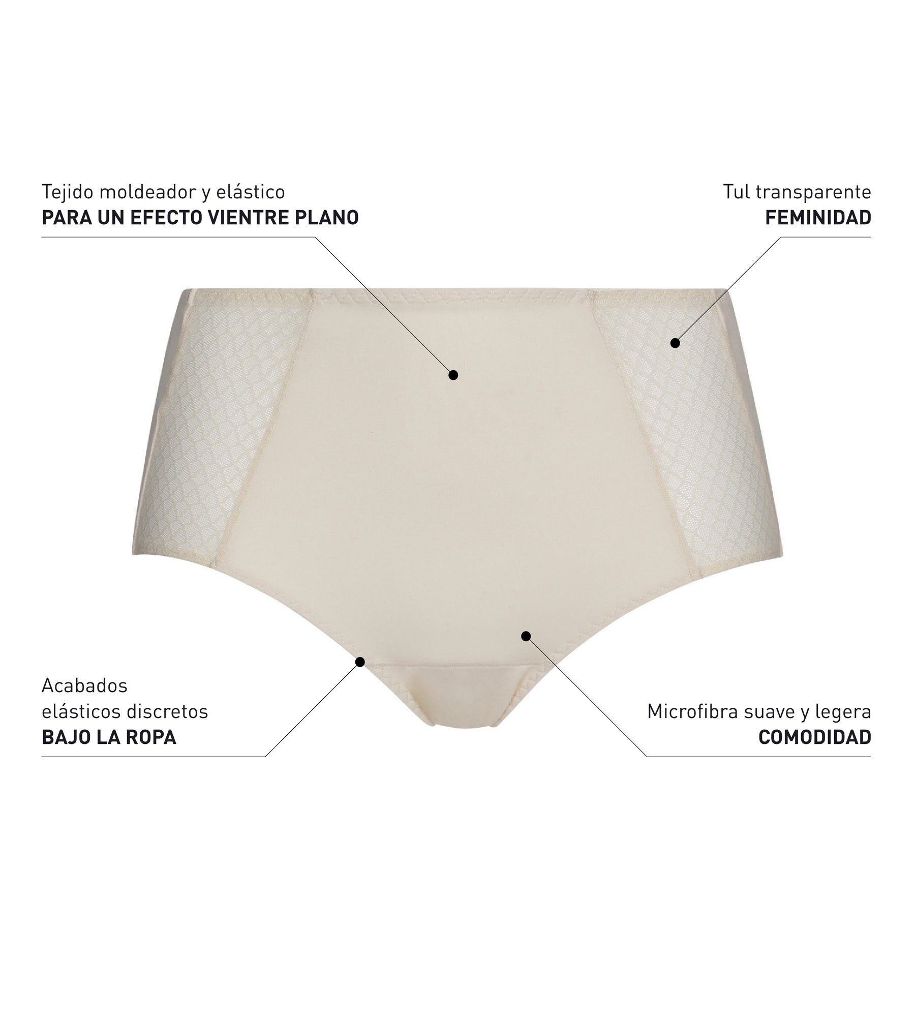 - EFECTO VIENTRE PLANO: El corte clásico y la microfibra elástica esculpen el vientre y las caderas para una silueta más lisa.
