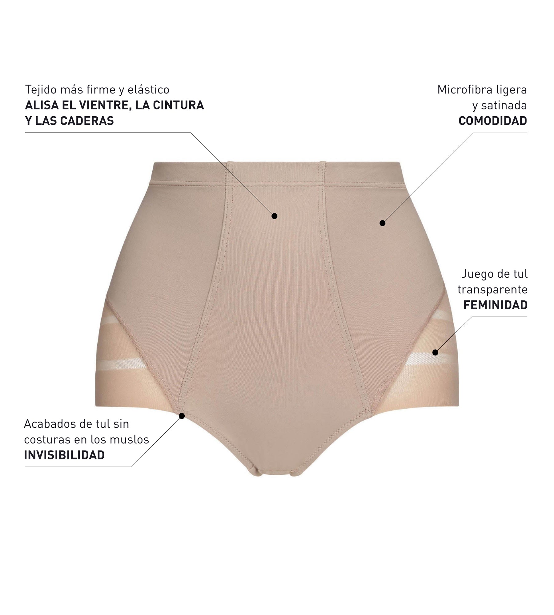 - EFECTO MOLDEADOR LIGERO: El corte clásico y la microfibra elástica alisan el vientre, la cintura y las caderas.