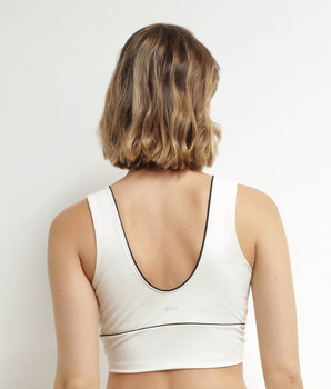 Lleva un sujetador integrado que aguanta el pecho con firmeza pero sin comprimir, con copas de espumilla, un escote en pico y la espalda abierta, ¡te sentirás comodísima desde el principio al final del entreno!
