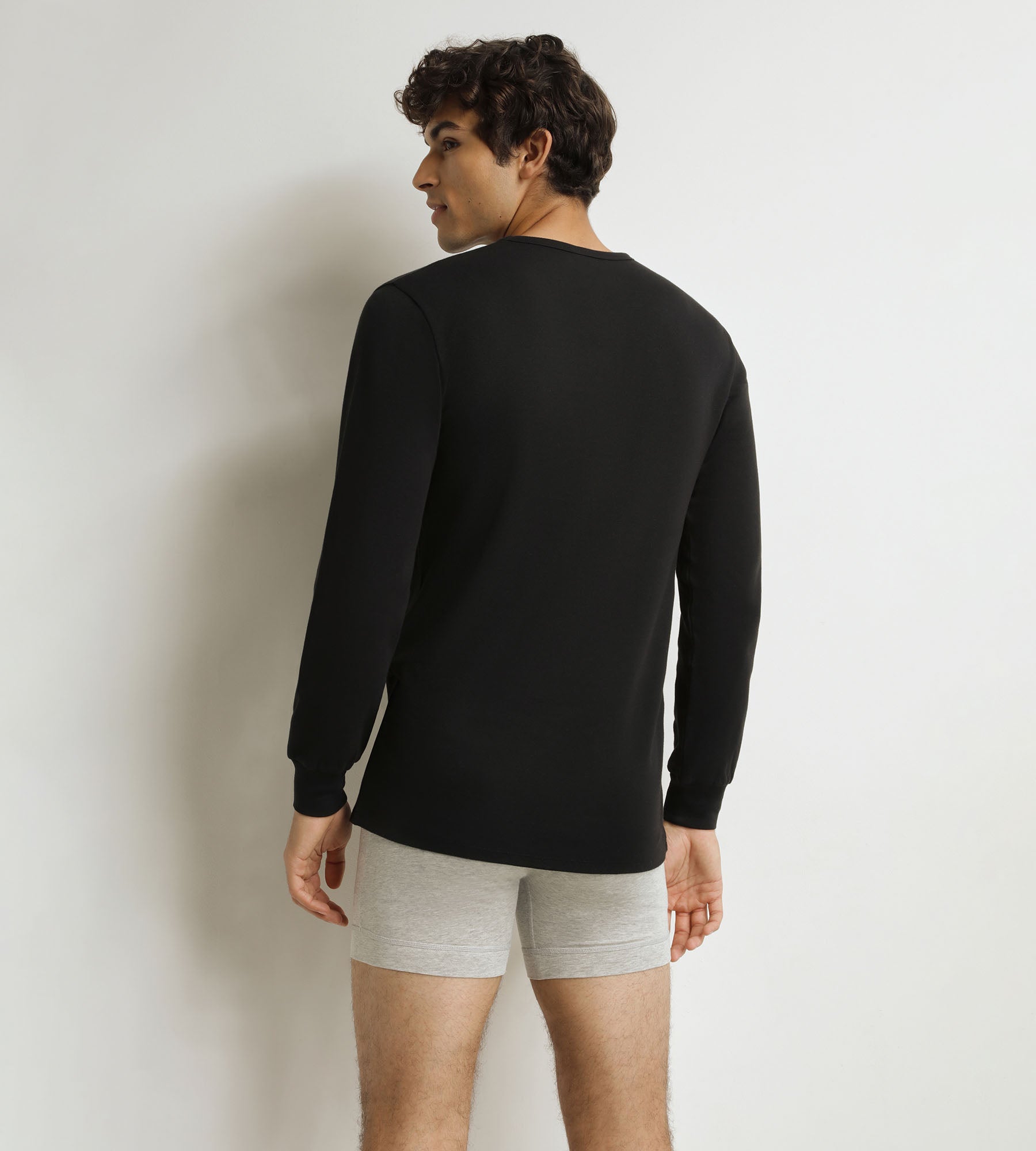 Pensada para el invierno, esta camiseta para hombre apuesta por la sencillez y la eficacia. Gracias a su tejido de algodón, actúa como capa aislante sin bloquear la respiración de la piel. El corte entallado y el cuello redondo facilitan su incorporación a tus looks cotidianos. Con sus mangas largas y su punto fino, la camiseta de algodón para hombre se puede llevar de forma ligera y cómoda durante todo el día, en interiores o bajo una capa gruesa.