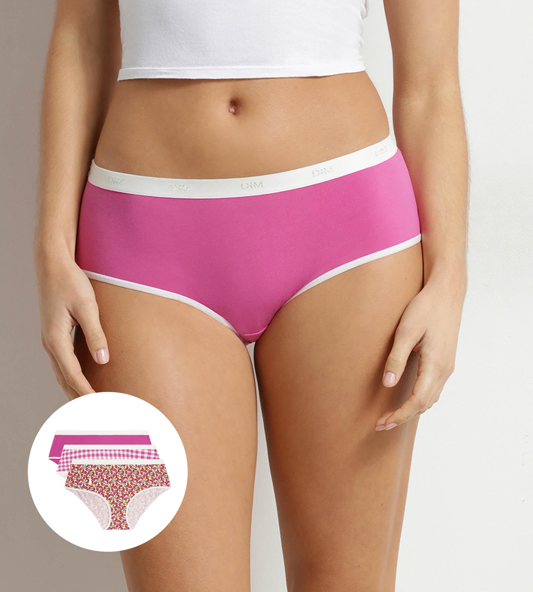Déjate seducir por el estilo campestre del pack de 3 bóxers de mujer Les Pockets de Dim, confeccionados en algodón elástico y decorados con flores y cuadros vichy.