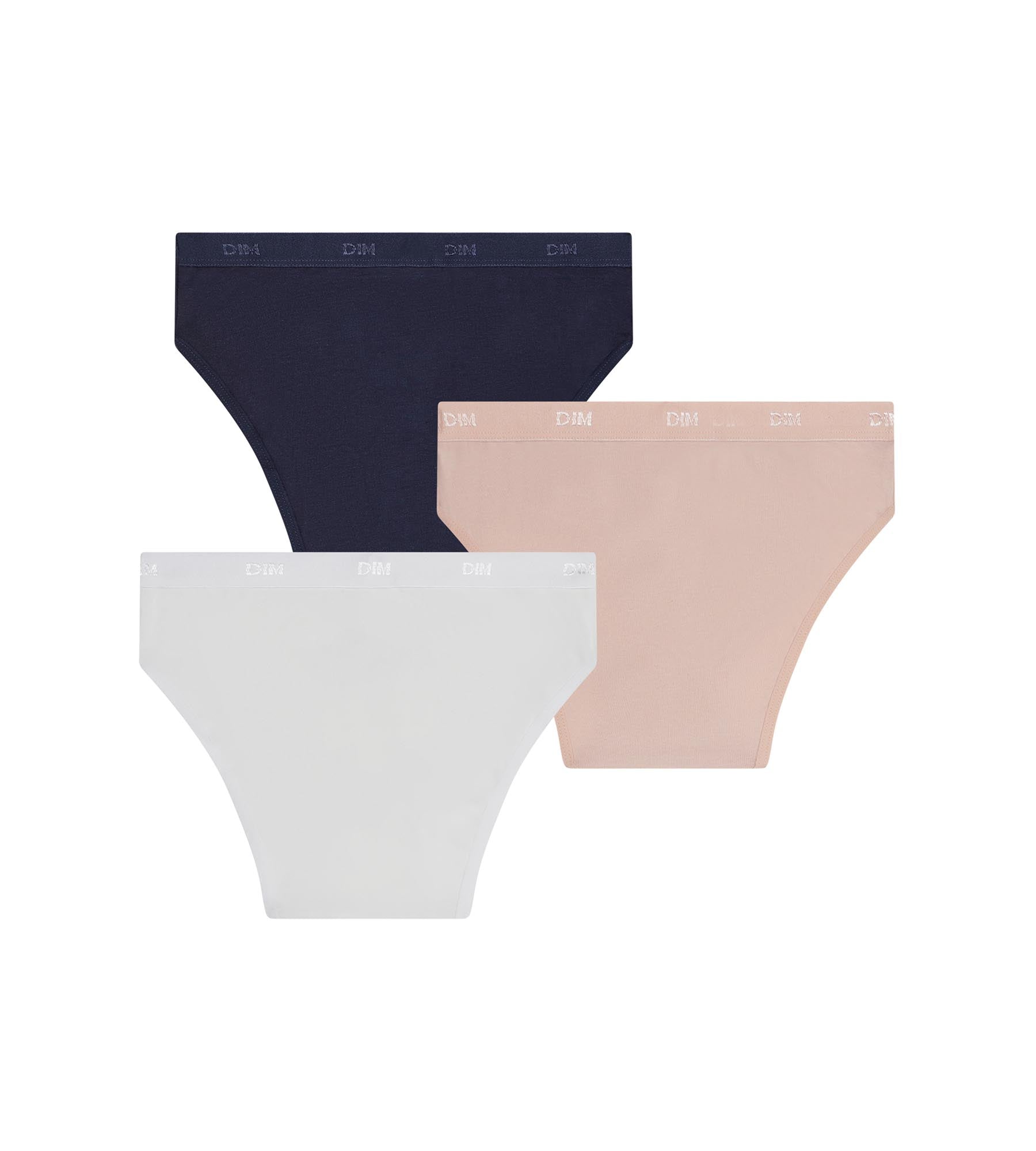 Comodidad duradera y estilo sobrio: ¡el pack de 3 braguitas para niña de algodón elástico rosa, azul y blanco Les Pockets se convertirá en su aliado diario!