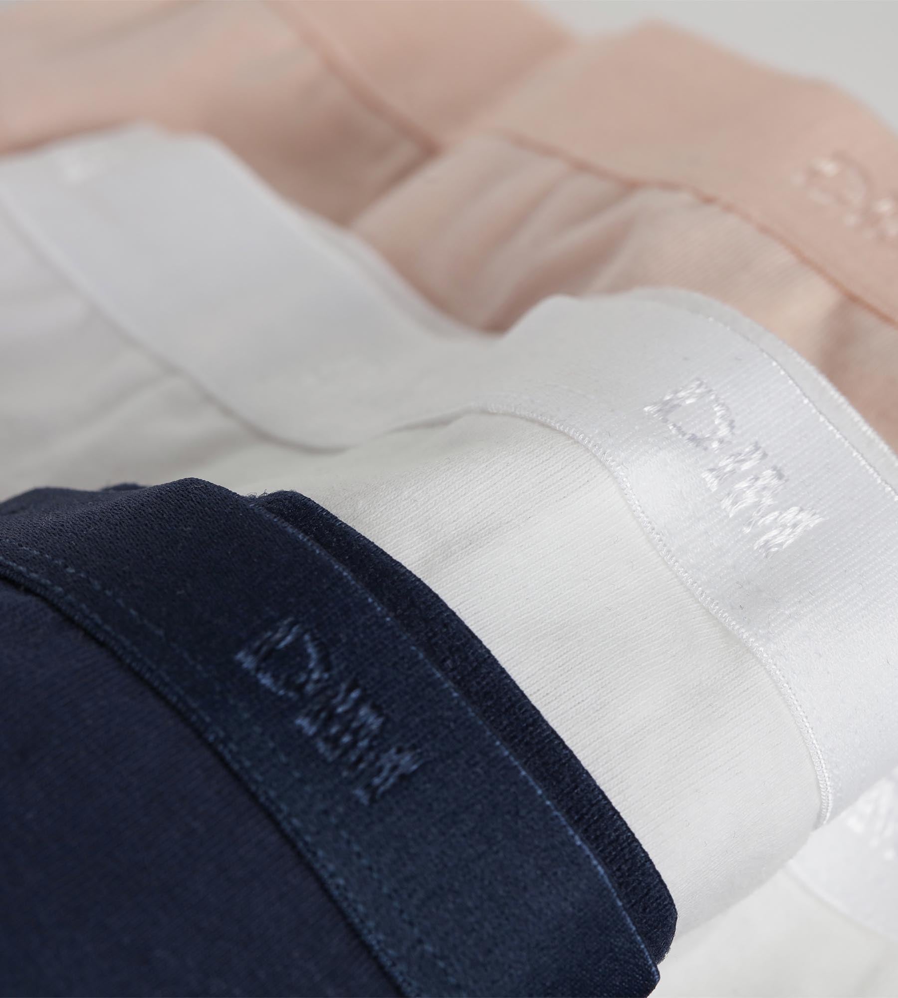 Pack de 3 braguitas para niña de algodón elástico Rosa Azul Blanco Les Pockets