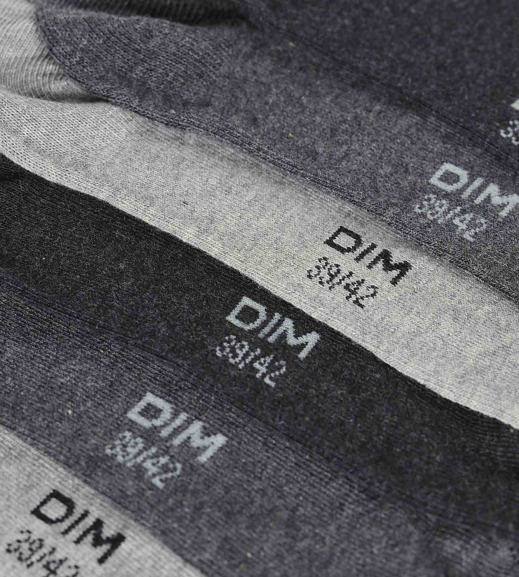 Viste la gama de grises más fresca y divertida que lucirán tus pies: ¡hazte con el pack de 3 pares de calcetines para mujer de algodón cortos y grises Dim Coton!