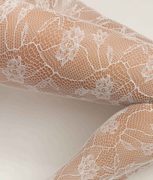 Pantis de rejilla y encaje floral para mujer Baroque White Dim Style