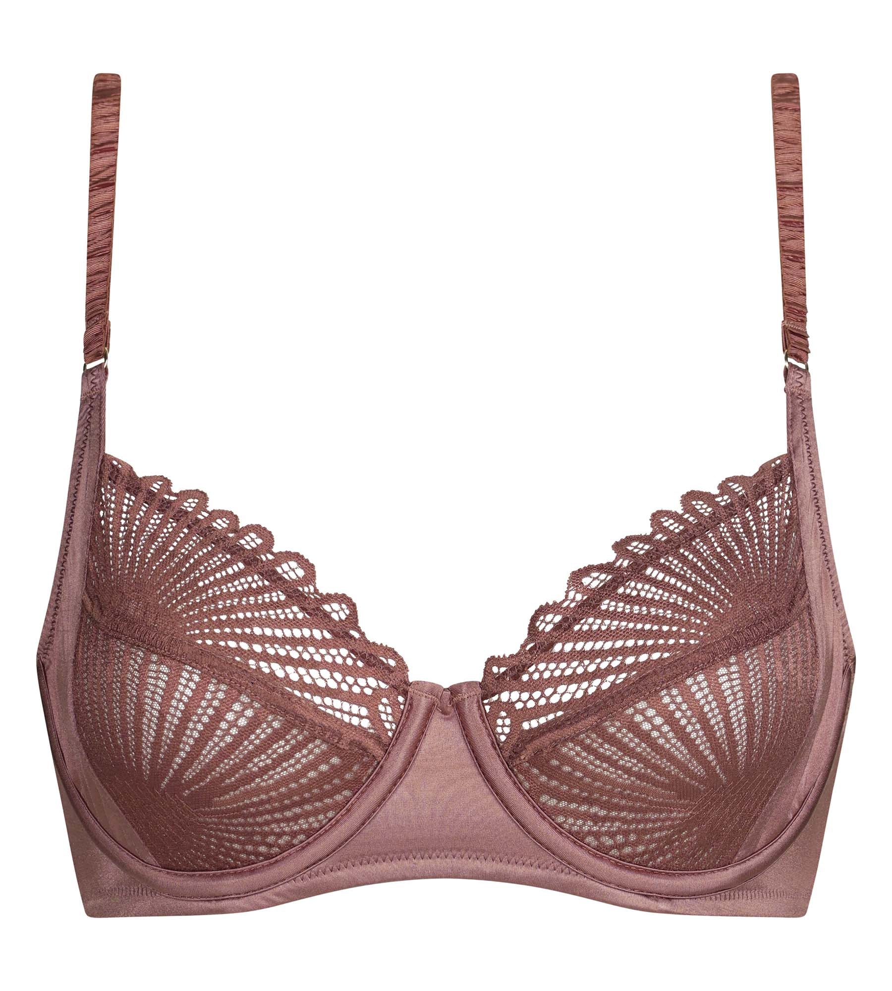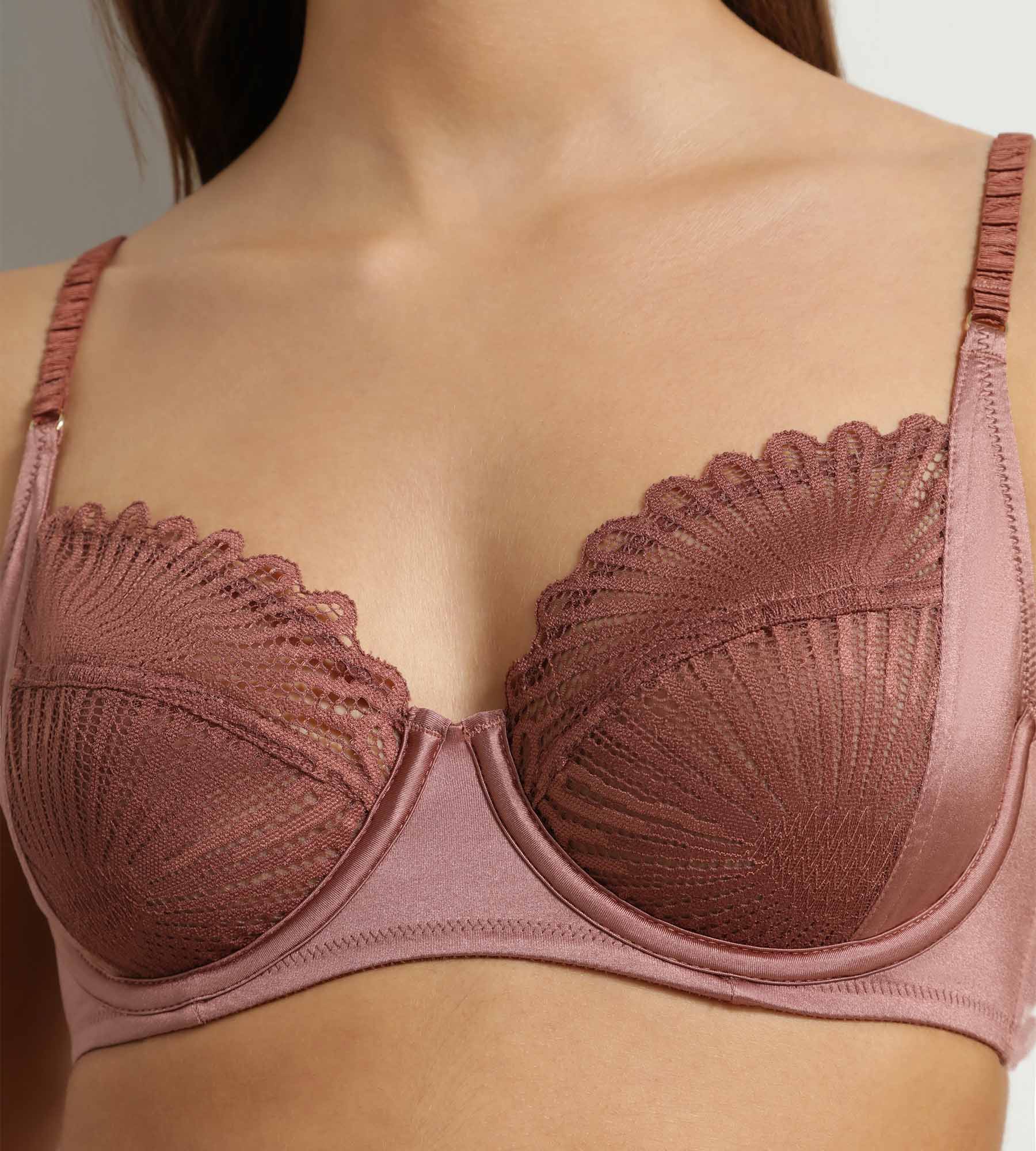 Encaje gráfico y satén luminoso: el sujetador con aros Dim Chocolove Marron estructura el pecho y realza tu feminidad.