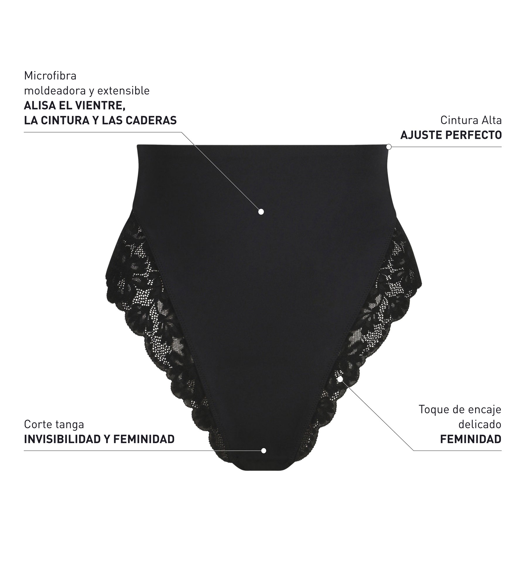 Tanga moldeador talle alto microfibra y encaje negro Dim Silhouette Elegance