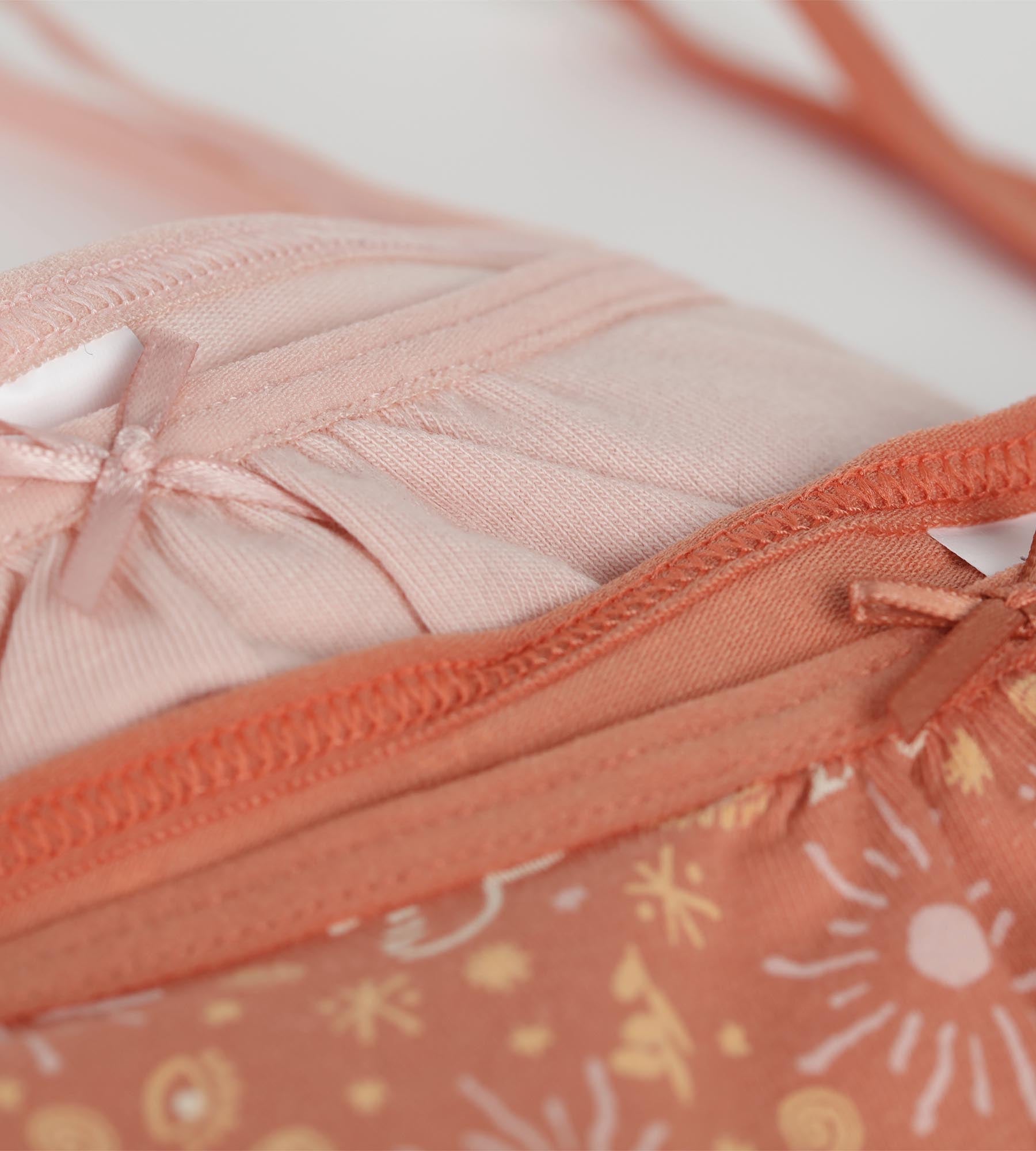 Boostez son confort quotidien avec le lot de 2 brassières fille en coton stretch Rose Ocre Les Pockets, aux imprimés graphiques vibrants !