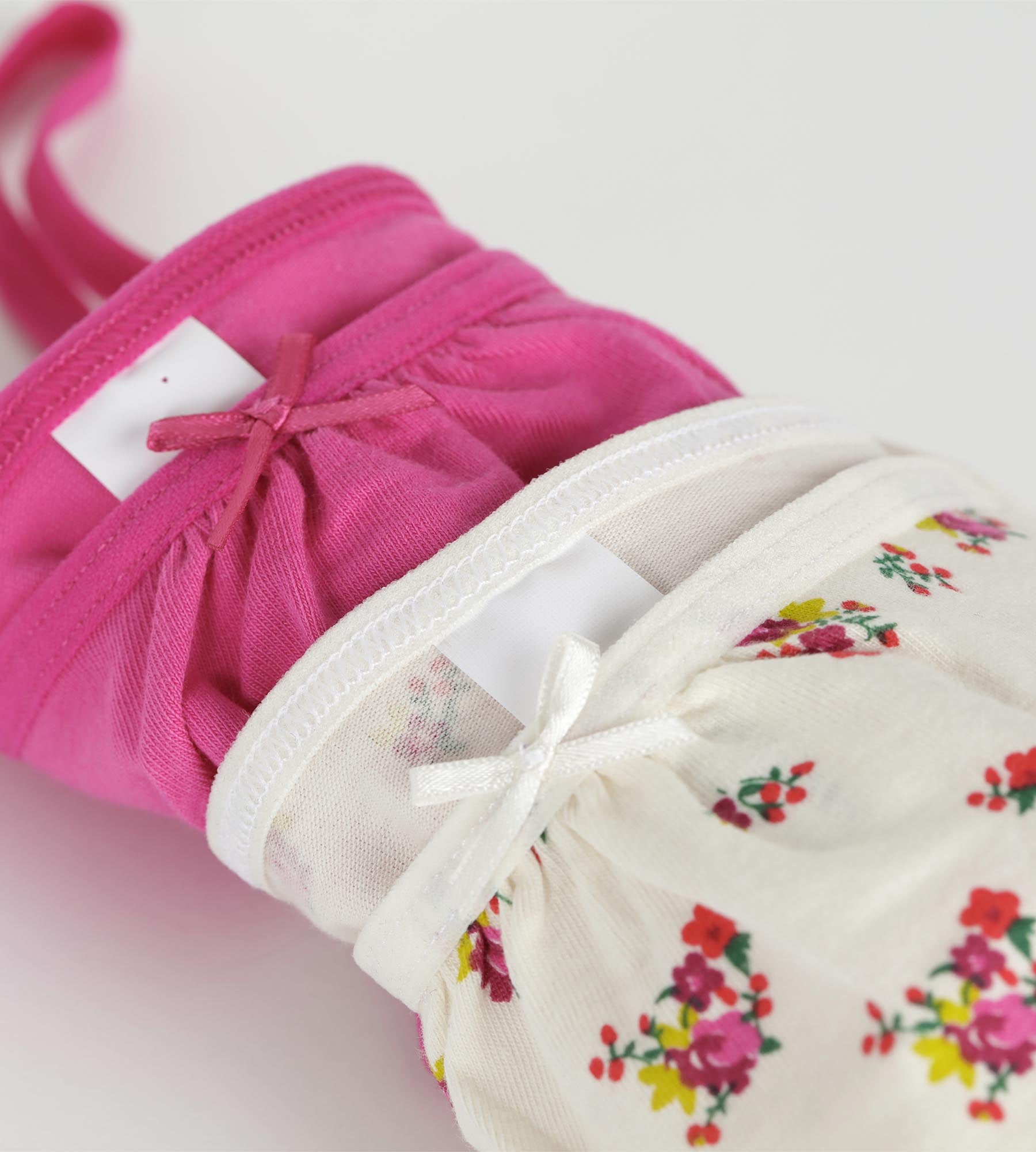 Initiez-la en douceur à son premier soutien-gorge avec ce lot de 2 en coton stretch Rose et Ocre à fleurs Les Pockets.